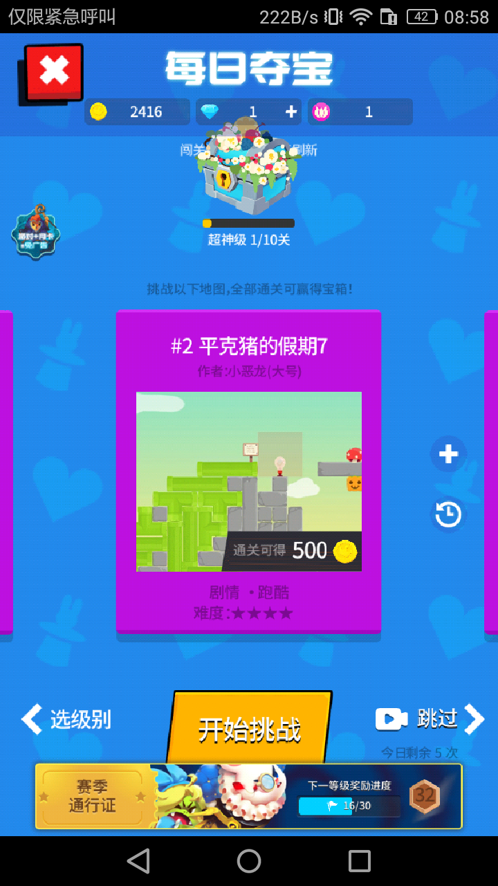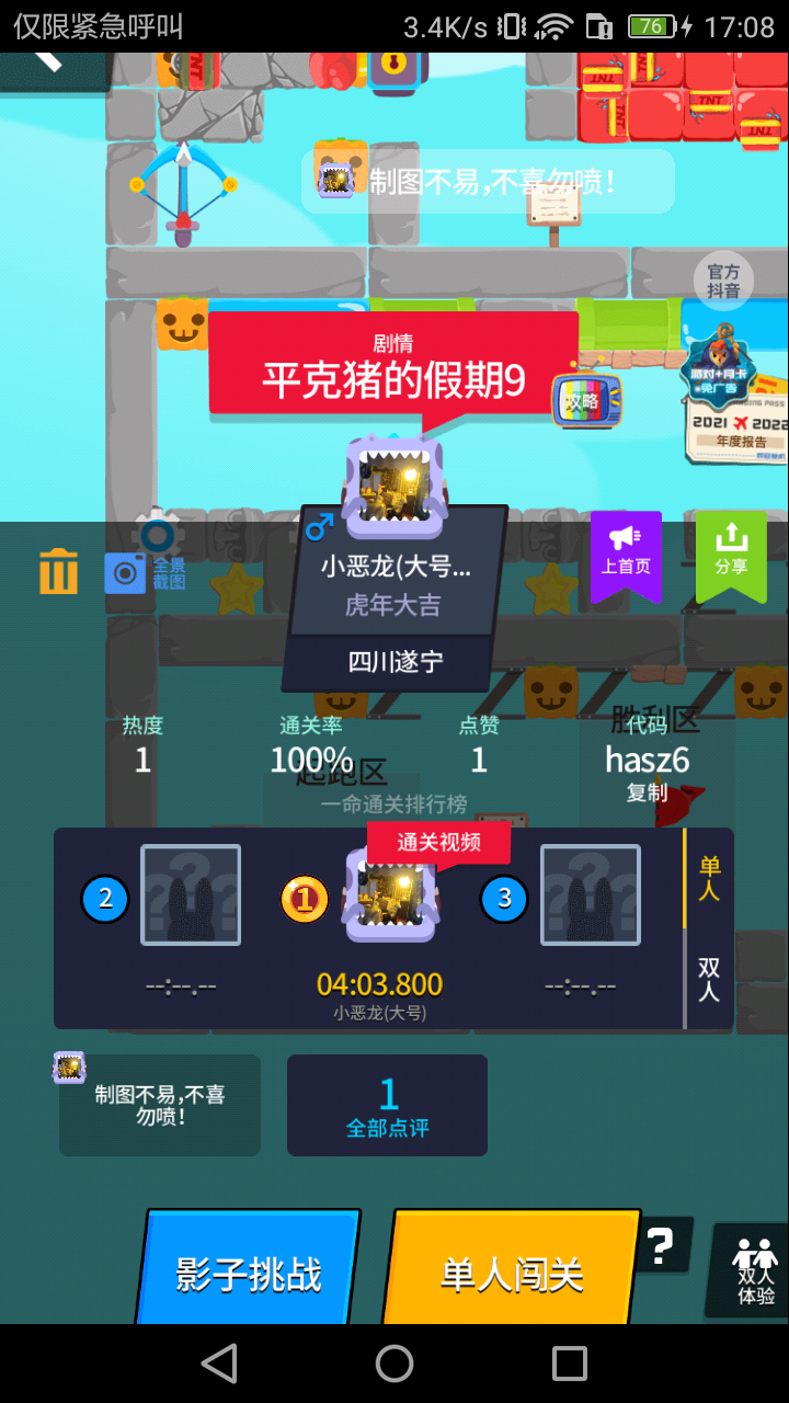 这广告越看越多根本看不了,然后排位赛金币打几局就没了而且赢的金币还没门票多,做的地图不火,我很无语就火了两张,地图额度只有免费的三张解锁其他要看视频,我勉强看到了11张⋯⋯⋯希望官方改善
