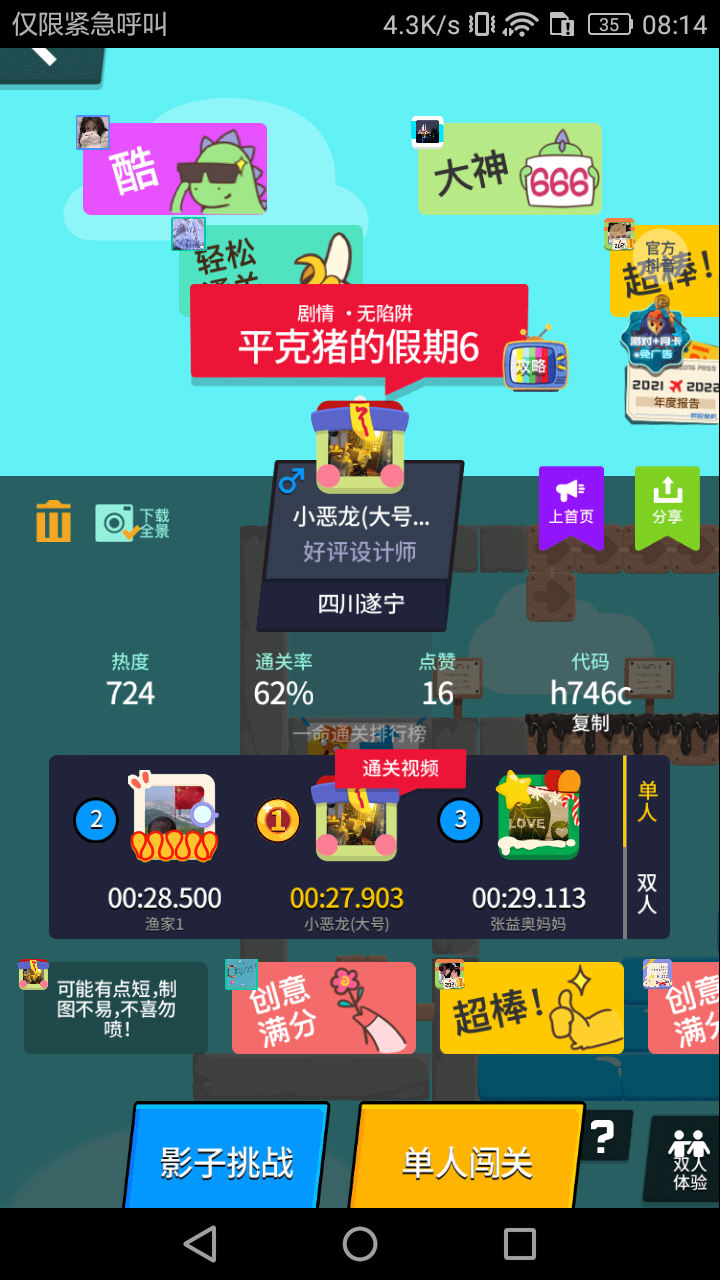 号外号外!平克猪的假期更新至7了!这期更有难度还更有趣,欢迎游玩!