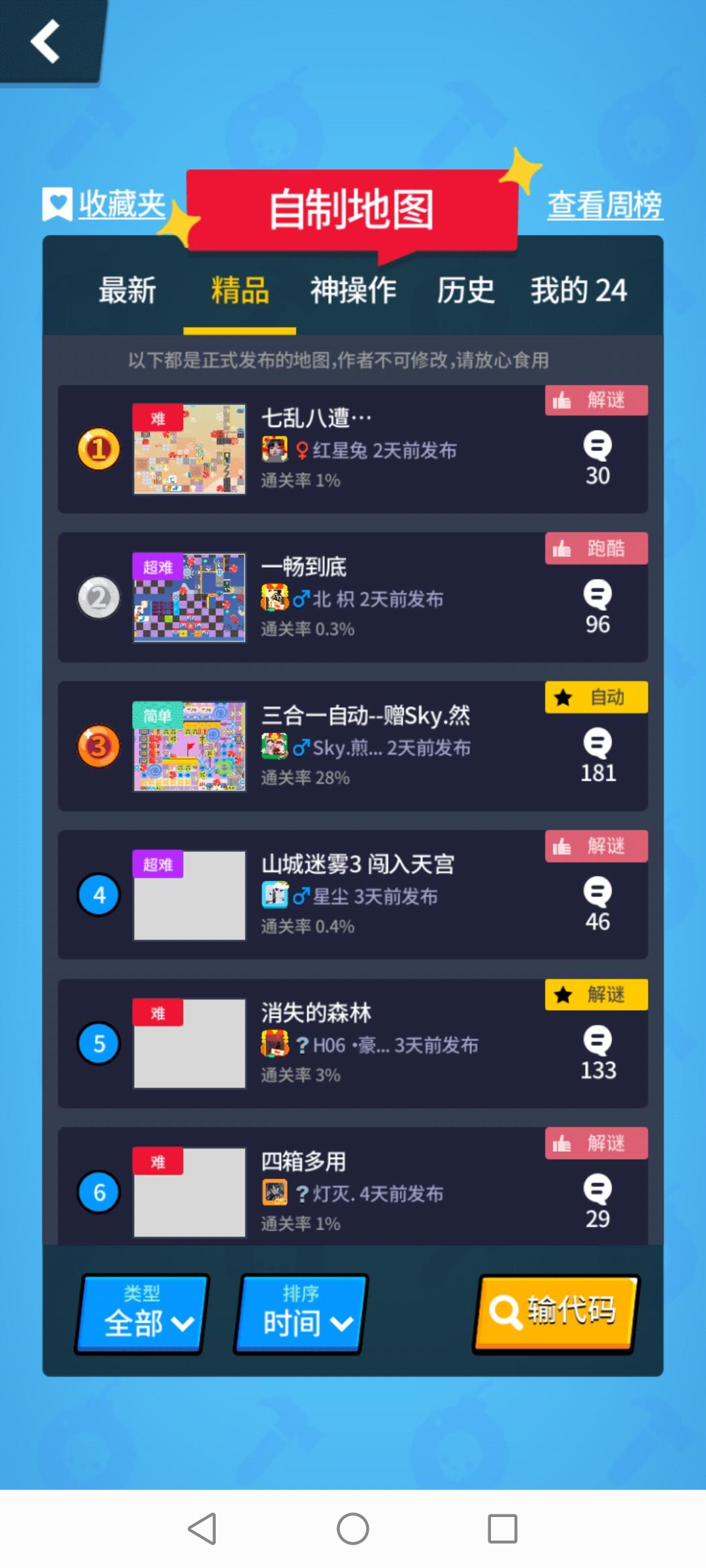 刚刚我发现了新的更新第一个更新:有的精选变成好图了。第二个更新:上面的精选变成精品了。评分标准:好图达到标准平均分1~2分精选达到标准3分推荐达到标准4分强推达到标准5分Q:为什么平均分1~2分是好图呢?难道强推不是好图吗?A:是这样的,好图是值得一玩的标志,但对于极致创意不需要那么追求,我觉得甚至新手体验会不错。到4-5星更看创造性和趣味,往往需要一些高难度技巧。4-5星的这