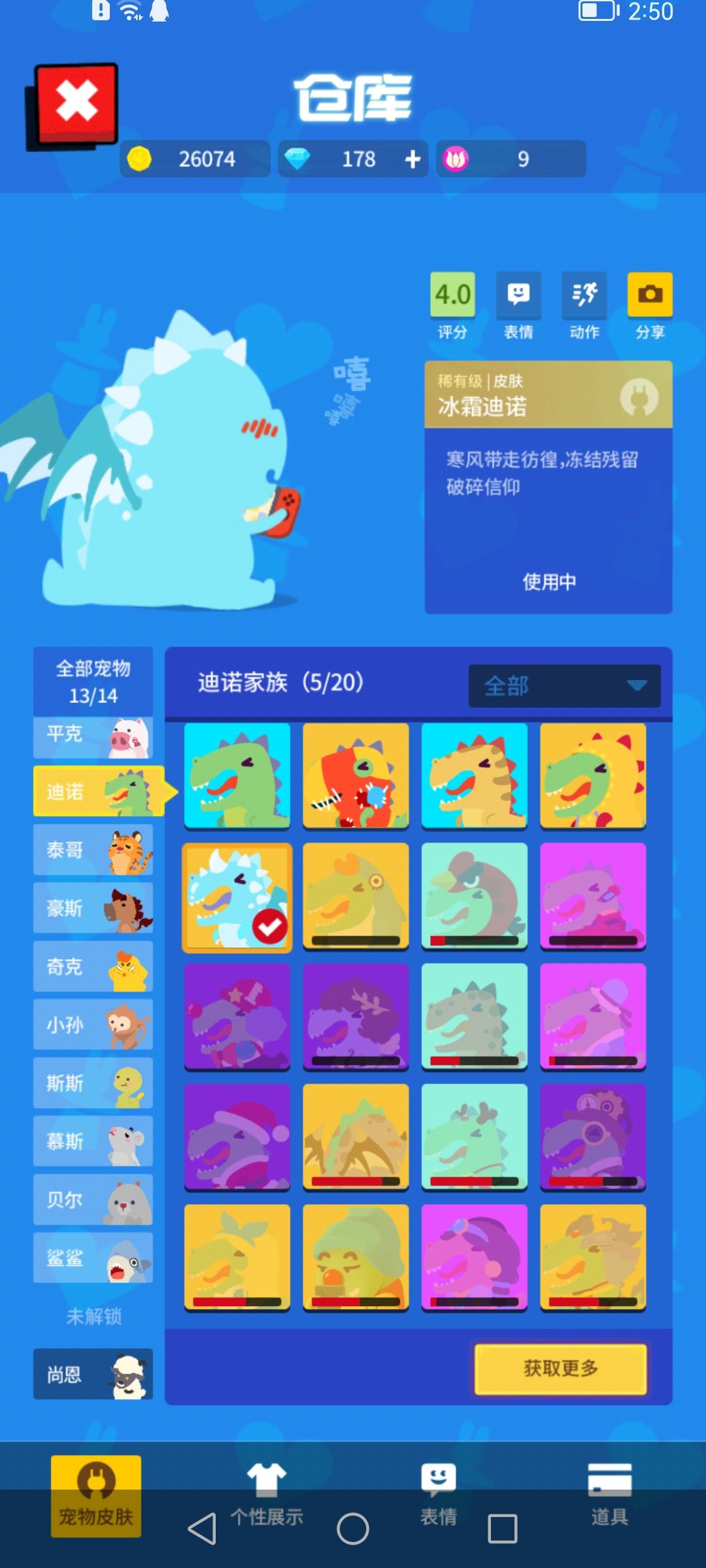 中了第四个皮肤!——冰霜迪诺(其实是中五个,红布尔重复了)
