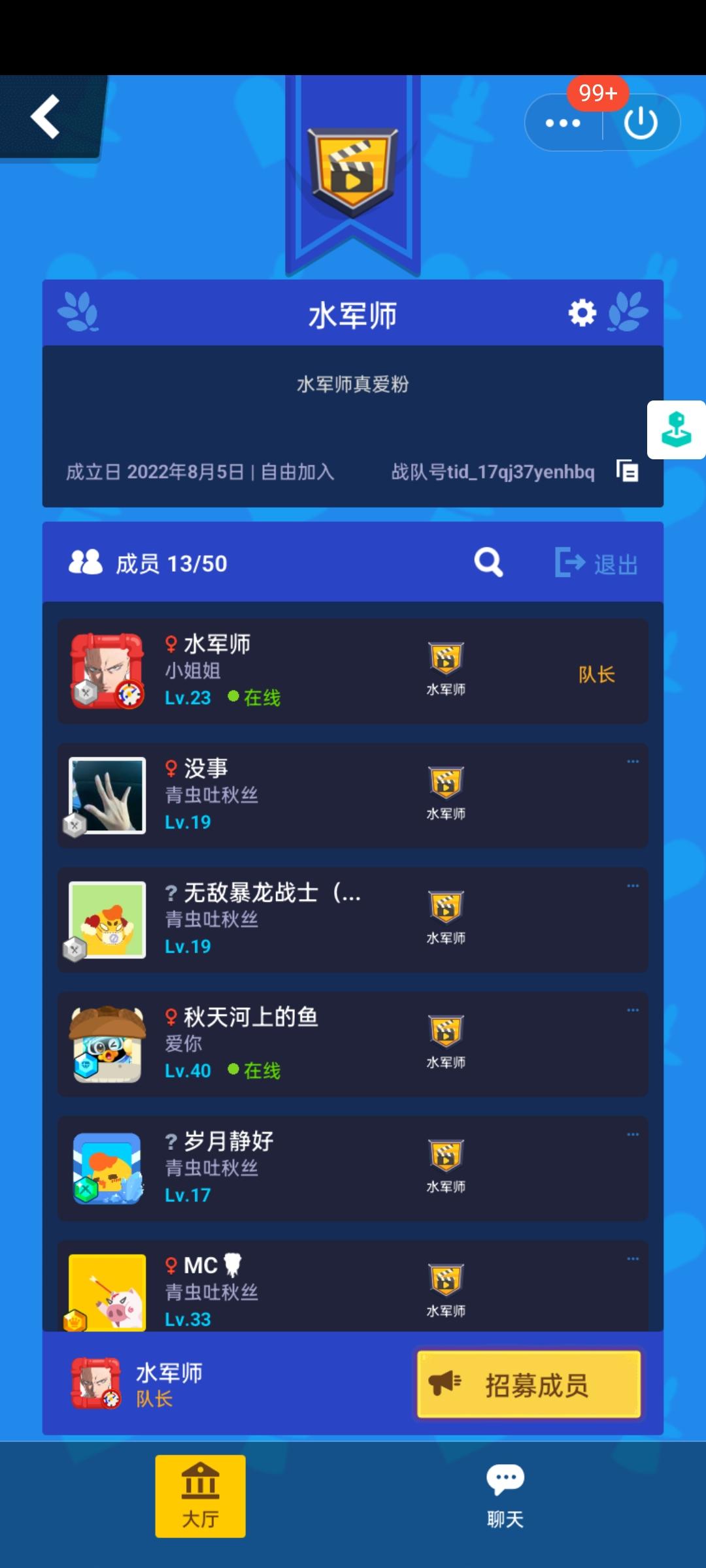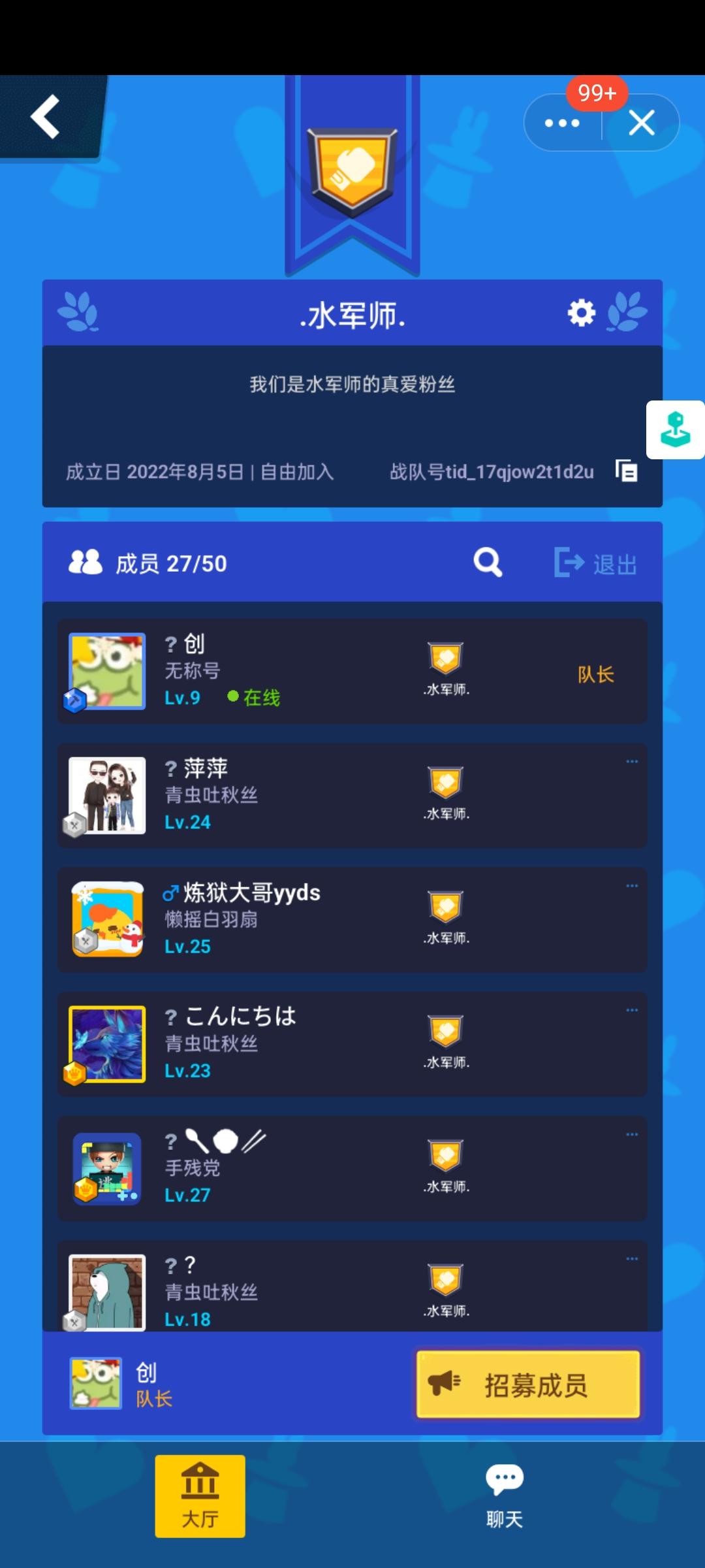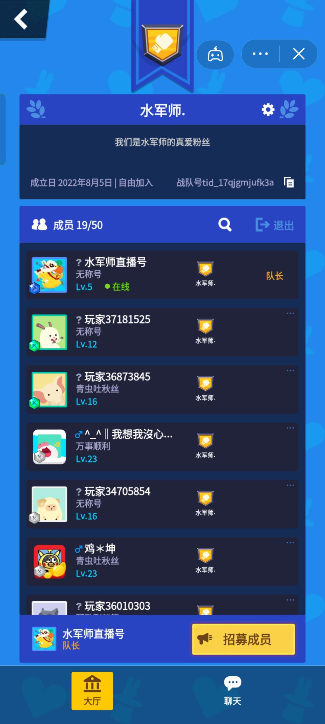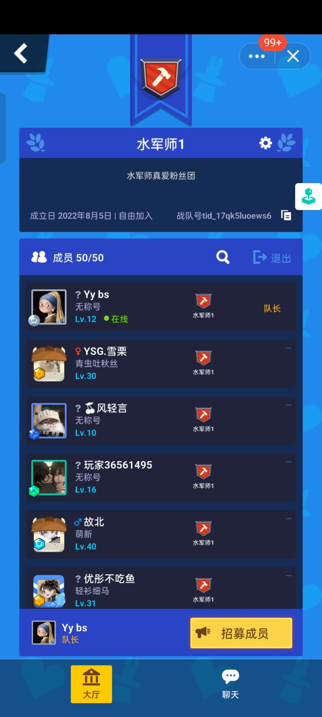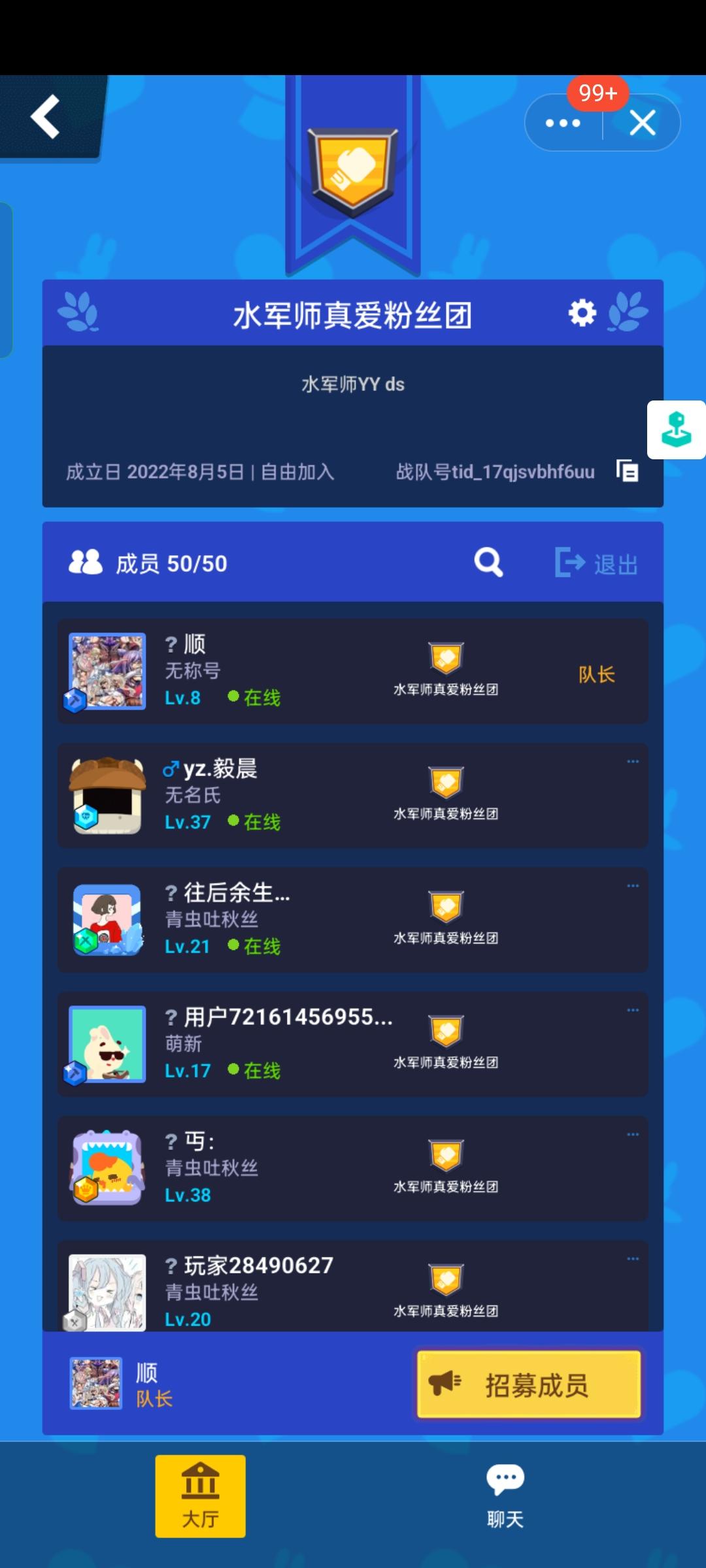 我的粉丝天团和我的主力战队我会每天轮流去粉丝团战队巡查所以我是一个间接拥有几百人战队的超级战队我也会随机选取几位真爱粉丝,当粉丝团团长