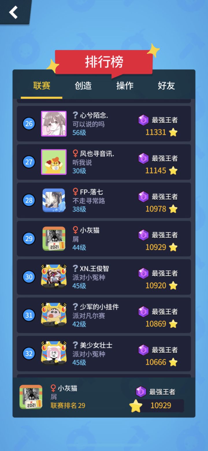 哈哈哈,最近作者有点忙不过来哈!首先要肝夺宝,(其实挺简单的),其次玩抽奖,看n个广告(一天就看完了),最重要的,其实作者也没有想到哈,经过我日日夜夜肝联赛后,我从4000名直接飙升到现在的29名,平均每天都要升30名(只是平均哈,现在1天升10名不过呢,也庆祝一下作者终于进军联赛前30名啦!!希望不要在这时候掉链子啊!!!(作者还要上网课,只能晚上肝!)