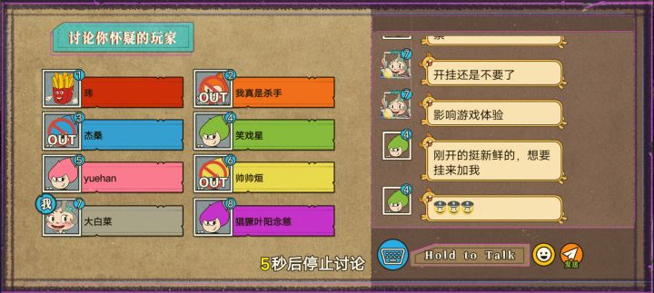 你这bug还是没有修复好,我仍然卡在了讨论界面。手机网络都是没有问题的,而且在开始游戏的这里也卡了。准备的时候人满了也迟迟没有开。