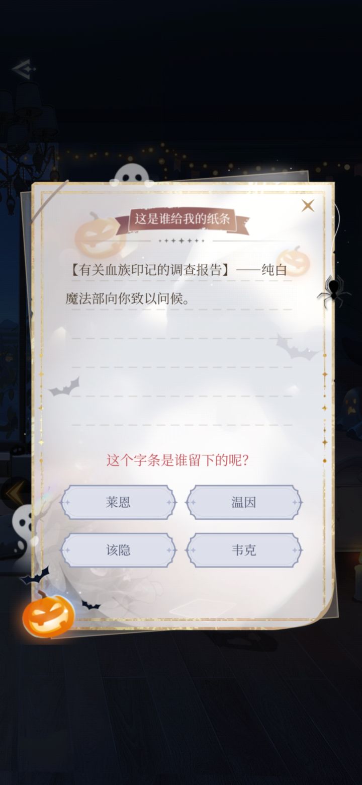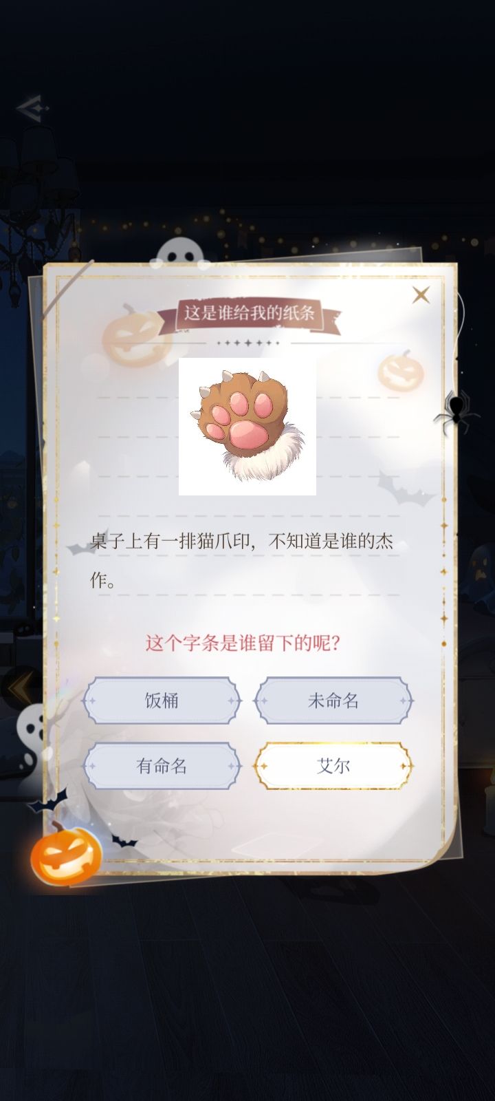 这个猫爪印的纸条真的迷惑到我了,一开始选饭统错了,结果是艾尔那个屑!选择对了之后他说:还以为我伪装成猫你就不认识我了呢😑😑
