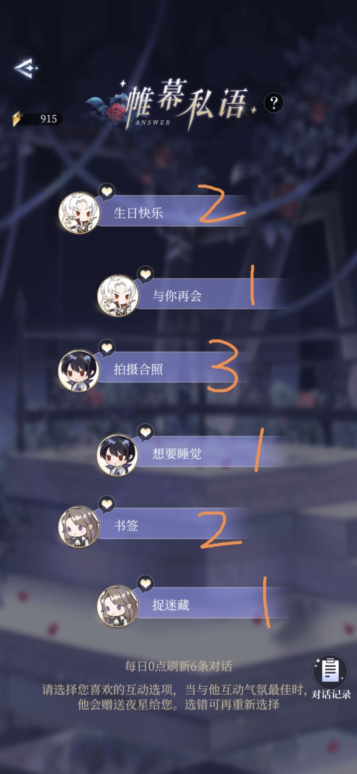 8.2 帷幕私语攻略(之前的在我主页也有哦)老大怎么怪怪的😆😌评论区贴夜星兑换码和约兰币兑换码