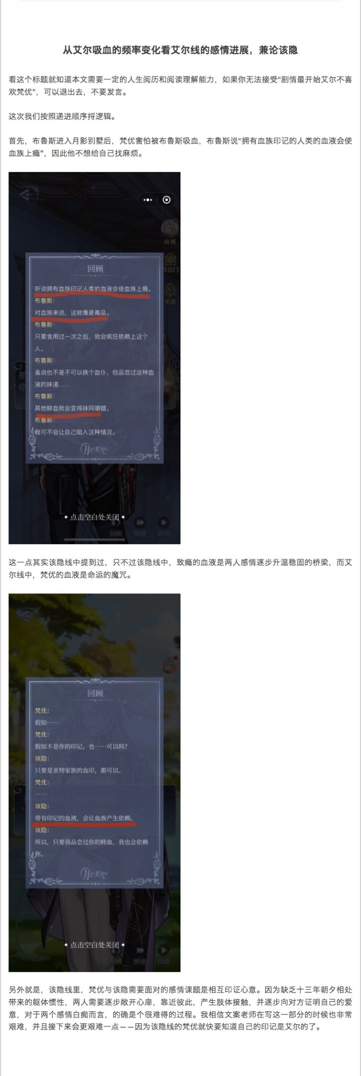 2.梵优和芙身上可能是同一个印记,但之所以转世到了两个人身上很可能是爱丽丝在世时被下了两个印记。梵和芙只要一方死亡,一方的印记就会转移到另一个人身上。原版中梵小时候就被艾尔发现了身上有印记,但梵死亡后所知道的血族无人死亡,有印记却不死,除规则上有漏洞的可能性之外,最可能是印记还没消失,没消失的话就只能是转移,再加上和芙很巧合的时间点,还有很巧合的一个有印记无力量一个有力量无印记,所以大概率就是梵芙共享印记并后来转到芙身上了。但为什么说是前世被下两个印记,再看原剧本,梵小时候遭遇过火灾并认定凶手是白艾,白艾不杀梵还养了起来,那究竟是梵印记觉醒唤醒了白艾还是白艾要杀梵唤醒了她体内的印记,第一种情况的话就说明梵印记就是白艾的,第二种情况的话梵更应该被杀掉才对,这样白艾还能杀个高贵血统的吸血鬼,不杀的话也能以此做要挟,但两种情况都没出现反而是把梵养了起来,并让梵报复自己,所以最可能的情况就是此时的白艾就发现那个印记是自己的了。根据自恋学霸的科普印记有两种,爱和恨,并没有说明不能叠加,芙的印记属于该隐,反推梵的印记也应该是该隐的,在教堂里时梵进入血阵最先吸引来的不是该隐却是艾尔,虽然白艾还说印记主人没来什么的,但也可能是因为已经来了所以没有再出现。矛盾点在于芙的印记属于该隐,反推梵的印记也应该是该隐的,但不论是梵咋遭遇危险该隐都没出现,出现了也是观望,所以梵身上的印记大部分属于艾尔,或者目前艾尔印记压过了该隐印记。还存在一种可能,艾尔加了印但出于一些原因自己忘了。但不管是哪种情况,现在梵身上都是有两个印。