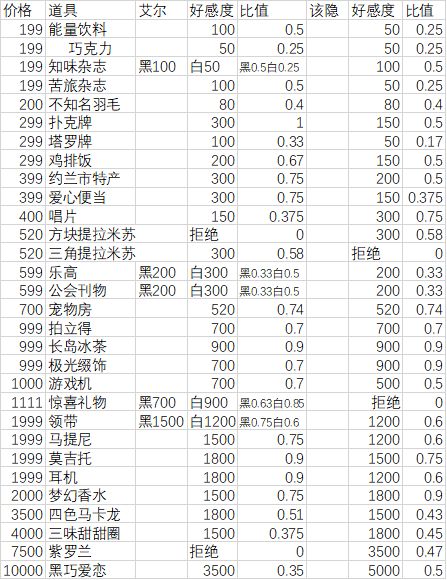 该隐线好感攻略(更新到8.30)