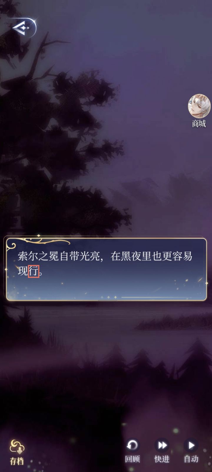 主线-12前进之路篇(一)1.原文:早知道应该问韦克要个“充电器”了校正:早知道应该问韦克要个“充电宝”了此时梵优手机没电且携带索尔之冕正在逃亡,她要充电器怎么充?插哪里?要个充电宝才能边移动边充电2.原文:艾尔“交”给了我好几种联系暗号校正:艾尔“教”给了我好几种联系暗号3.原文:不过就算我已经挡下了“火焰”校正:不过就算我已经挡下了“风刃”这里是该隐使用风刃攻击梵优,梵优使用火