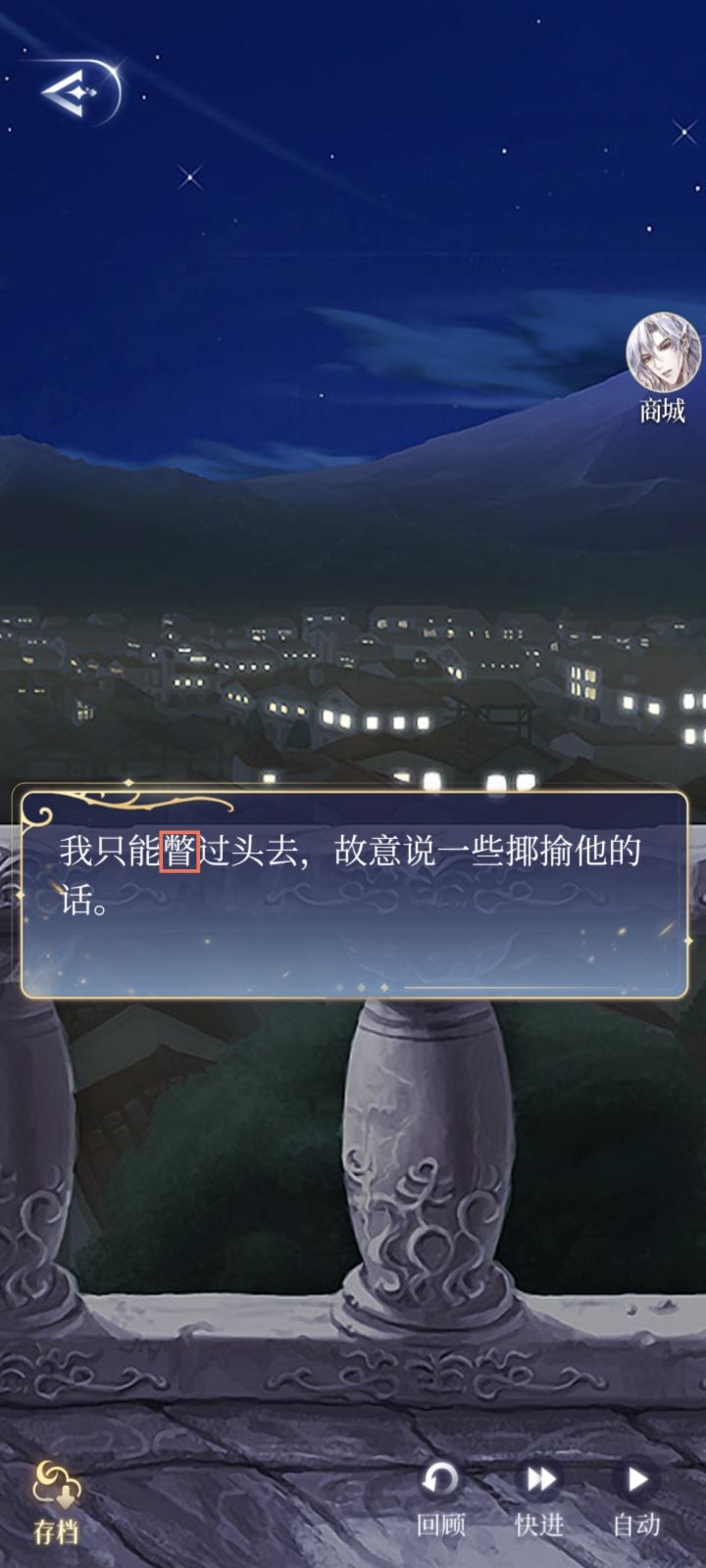 主线-9王国之光篇(一)1.原文:我“的确实”在某些方面异于常人校正:我“的确”/“确实”在某些方面异于常人位置:故乡2.原文:即便我想……其他人结婚……吗?校正:即便我想……“和”其他人结婚……吗?3.原文:我们再次四目相对。“·”校正:我们再次四目相对。多了一个·4.原文:我只能“瞥”过头去校正:我只能“撇”过头去“瞥”是很快地看一下,不能用于头位置:天边的明月5.原