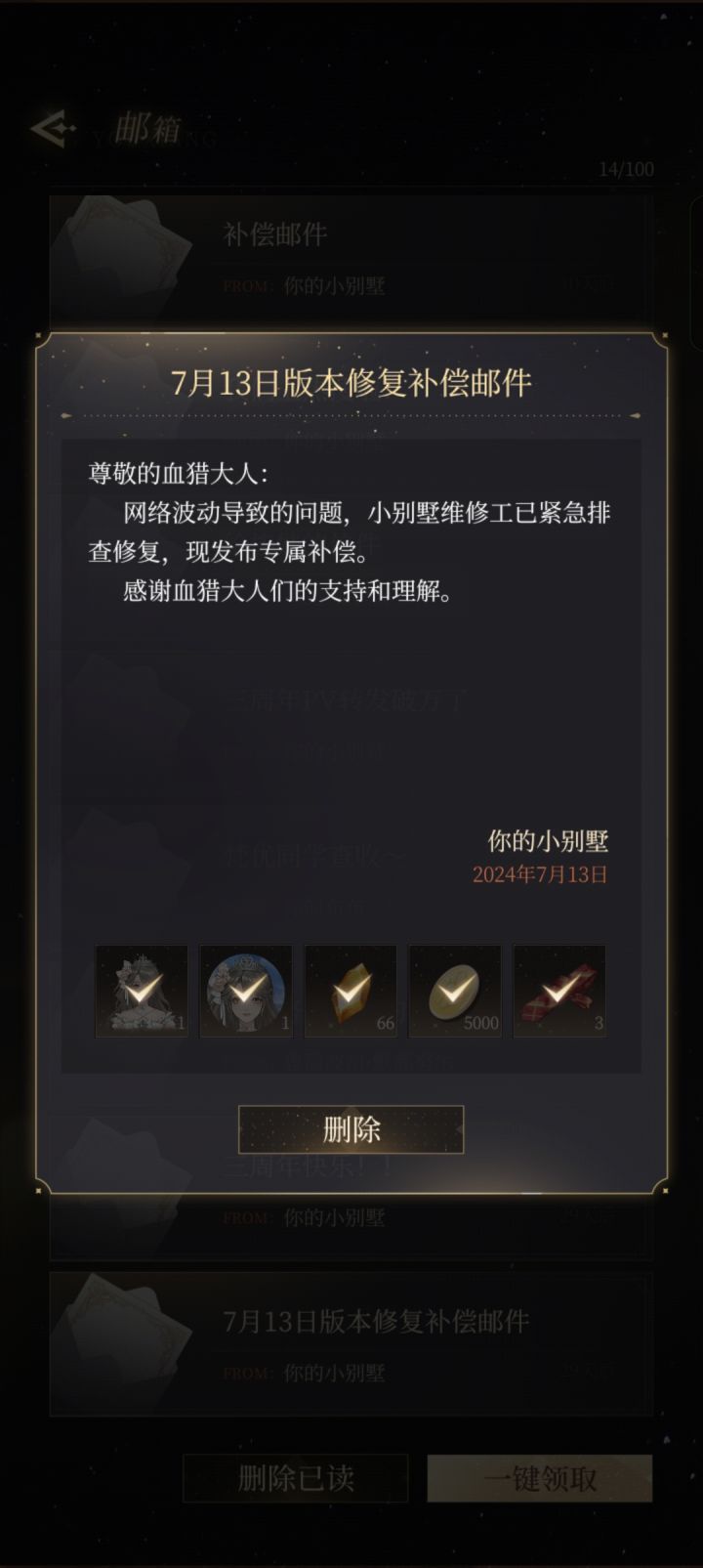 反馈三周年的邮箱领不了啊!!!小别墅快修复