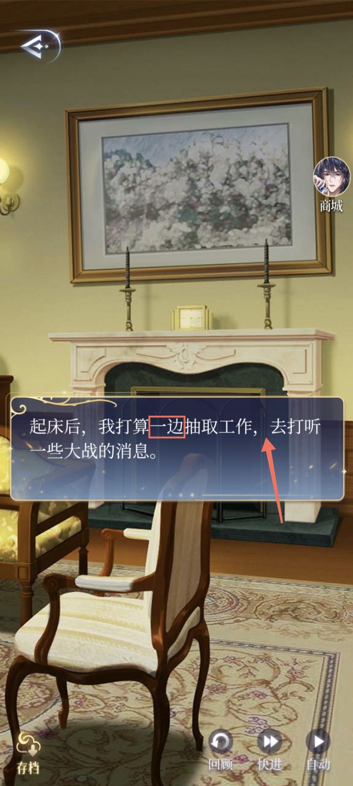 原文:我打算“一边”抽取工作,去打听一些大战的消息校正:我打算“一边”抽取工作,“一边”去打听一些大战的消息位置:主线-8柔塞之绊篇-暗通款曲