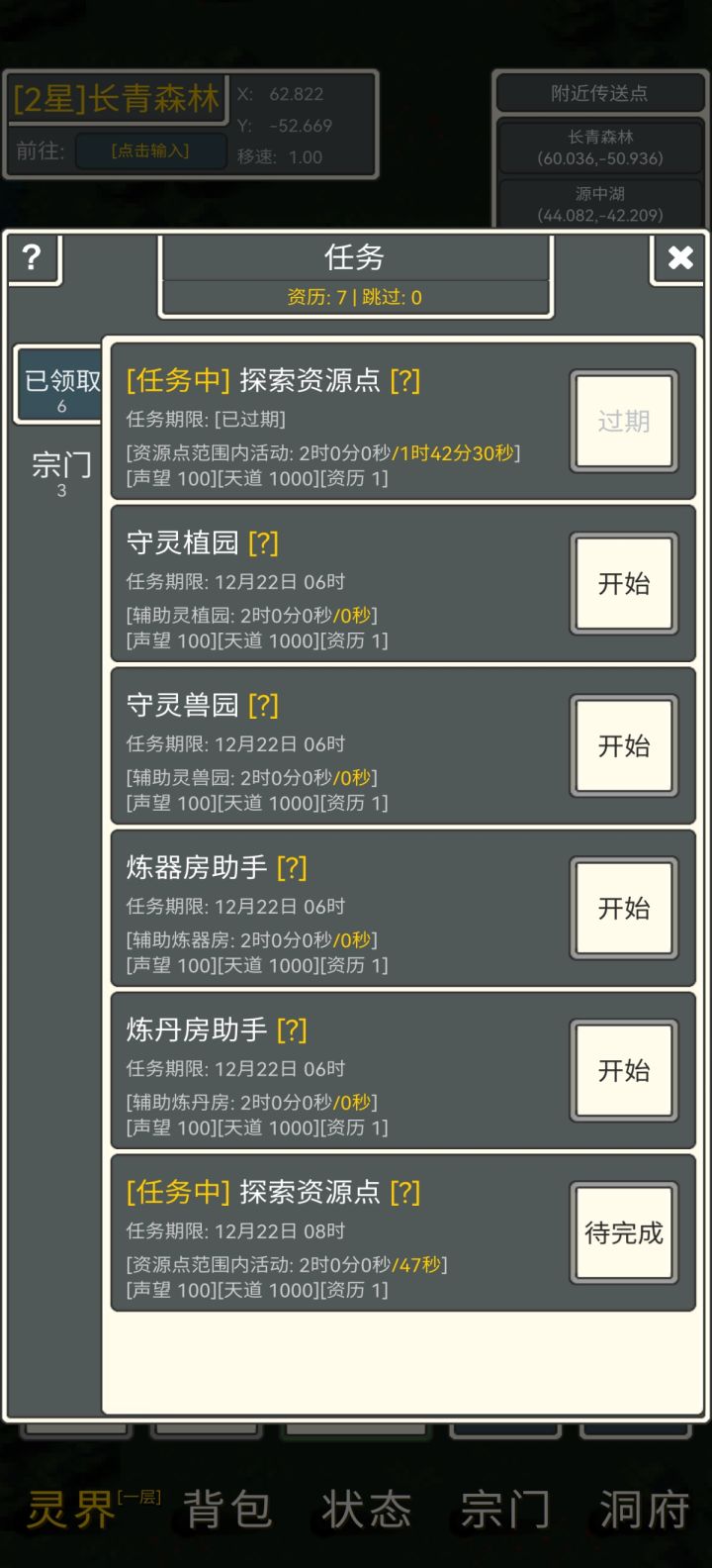 快点更新,像任务那些,应该根据具体任务给一些不同的奖励,不然没有人去做那么为什么要搞这个任务呢,收集资源的有几率获得矿物或药材,炼丹炼器助手可以增加职业经验,有几率获得炼丹炼器一些材料,