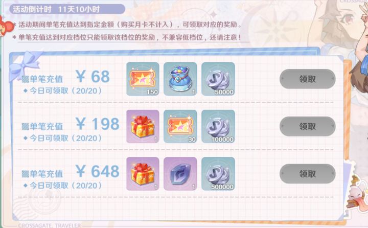 再反馈一个。充了328,但是每日充值里的奖励一个都领不了,啥情况