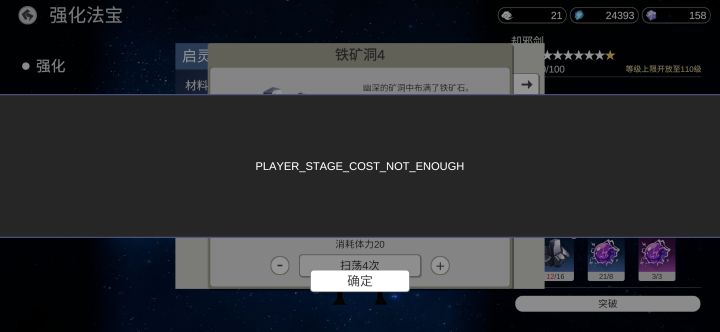 我有21体力,用20体力用不了,提示体力不够。只能用10个。