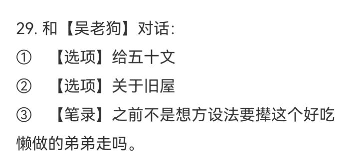 🌈攻略作者:迷失攻略组-路人A攻略流程包含了部分支线,如果是主线卡关可以参考线索合成部分(PC网页端可以直接Ctrl + F查找对应线索的具体出处)💓💓💓💓---------------------------------------------------54.前往【杭州码头】,搭船抵达南京。55.前往【小茶馆】,和【罗小眼】对话:① 【选项】鸟的来路② 【选项】不过分③