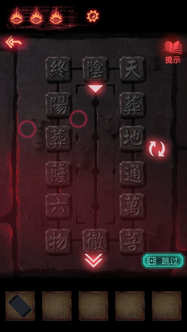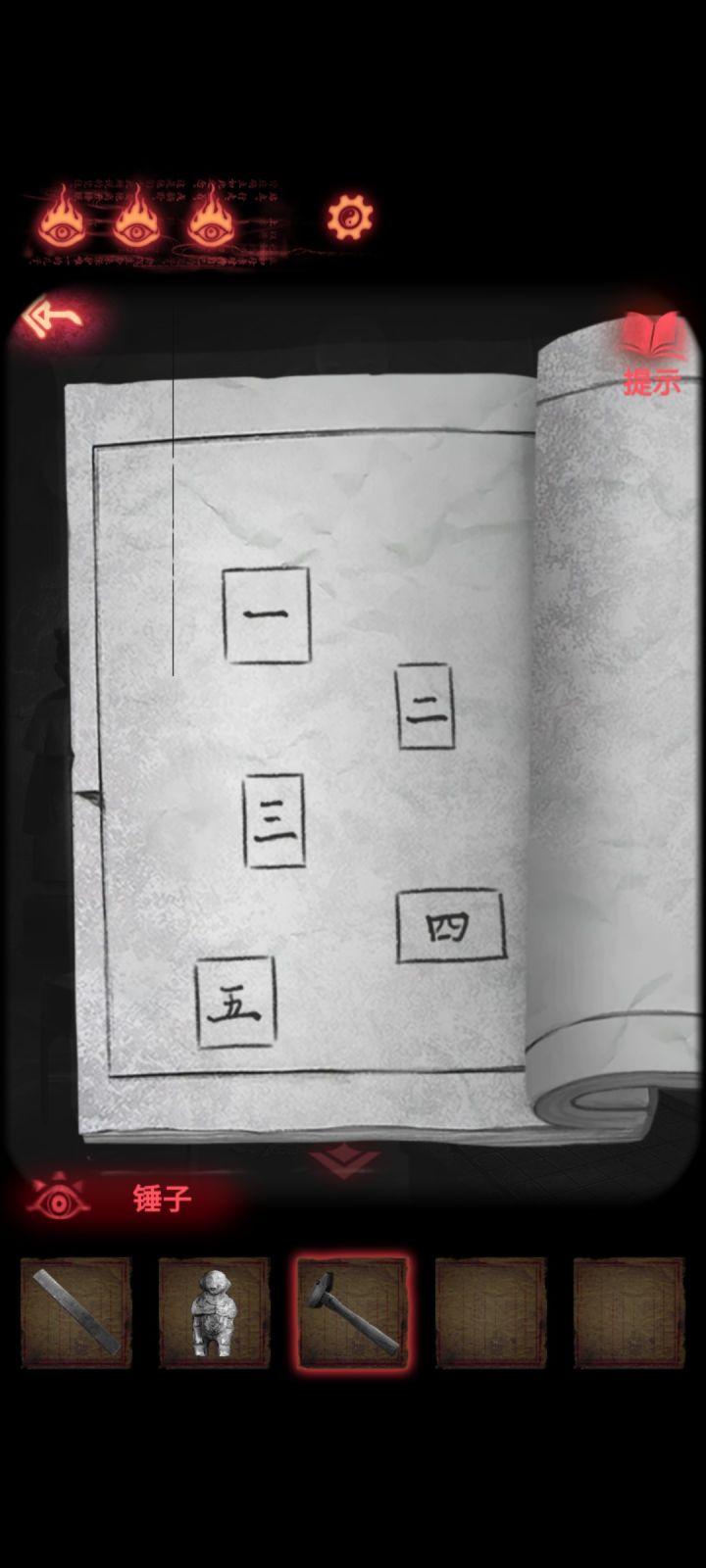 复制某位大神通关!整体感觉挺棒的 解密元素:很密集,考验多方面知识与观察力,难度的话前三章还行,不看提示完全自己走下来了;到第四、五章就开始怀疑自己的智商了,隔两步看一次广告,然后恍然大悟 传统文化:很喜欢解谜中涉及到的各种中国传统文化元素,能调动起来很多知识储备,快乐 人物剧情:两条时间线前后呼应环环相扣,而且男女主的人设都超棒啊,男主帅气有担当,女主干脆利落三观正,挣脱木偶线的意象很赞,就是希望我们的少平将军有一个更好的未来吧,这边执念一消,去和已经“适龄”的另一部分魂魄会合,然后邂逅……哈哈 ps:第五章墙上那四个甲骨文,从看到就一直在思考“鬼见门启”是啥意思,刚刚写评论过程中才后知后觉地反应过来应该从右往左念,“启门见鬼”,啧,突然一激灵哈哈