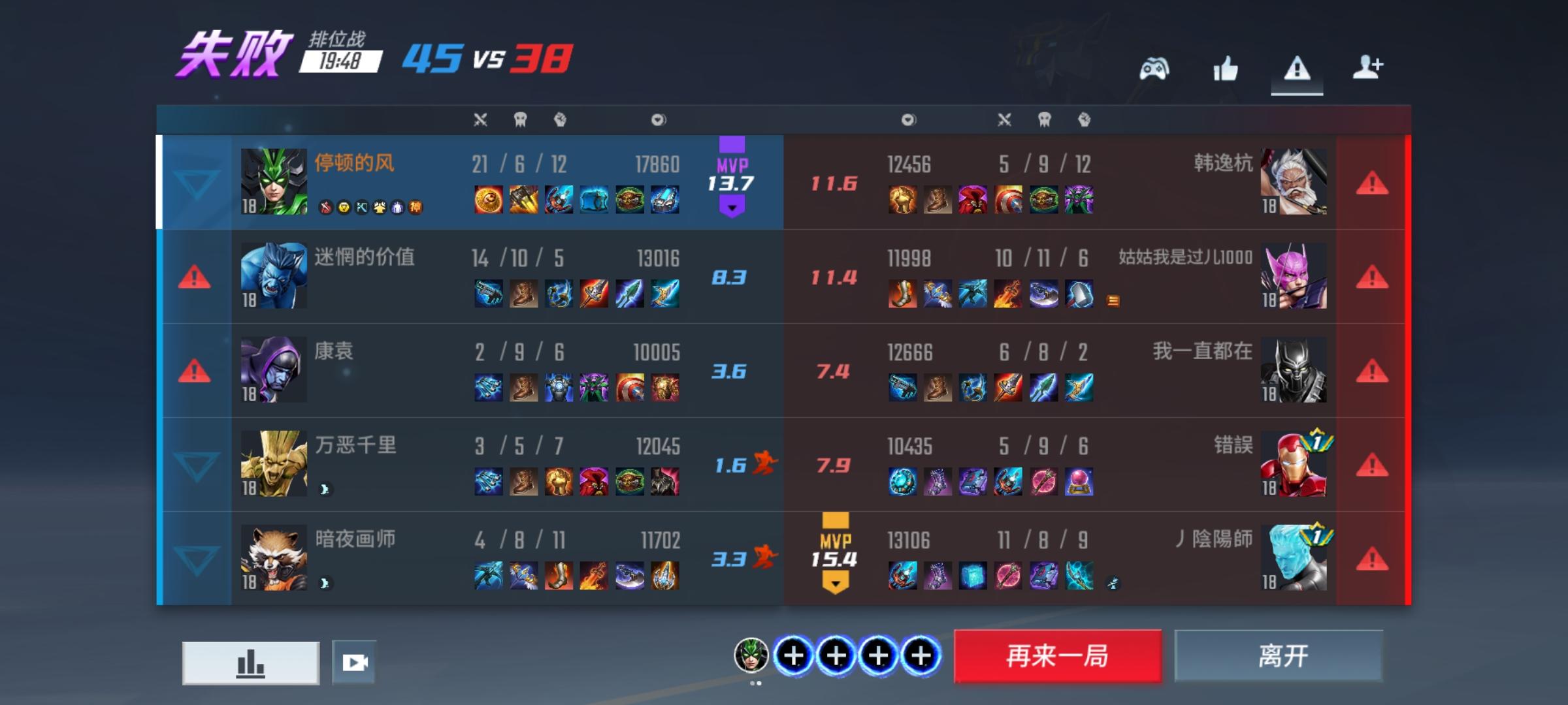 新游戏体验,老实说感觉蛮简单,tap游戏才六分游戏和王者差不多经济高就可以为所欲为,法师没吸血装,甚至钢铁侠还能改造装备?扣分打了一把,感觉格鲁特就是阿木木,钢铁侠有大眼的感觉,鹰眼是寒冰?天使是原来的哨兵。至于其他的没注意总体感觉不错,毕竟是开服游戏有点bug正常打了一把,比王者还王者,简直了建议:地图可以更细,装备更多,一味的模仿没什么好玩的反而会被喷最后吐槽一句,漫威这个ip还是