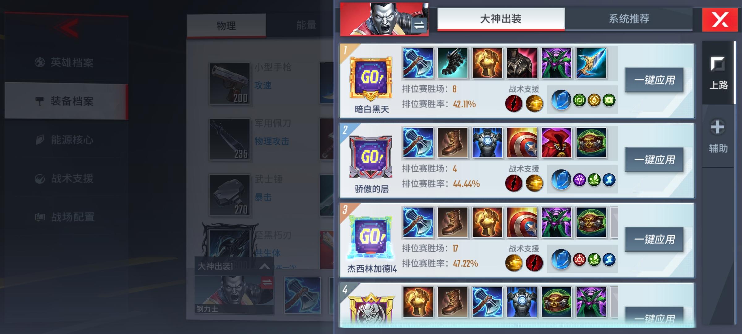 钢力士需要加强太弱了,排名前面的出装胜率没到50的。