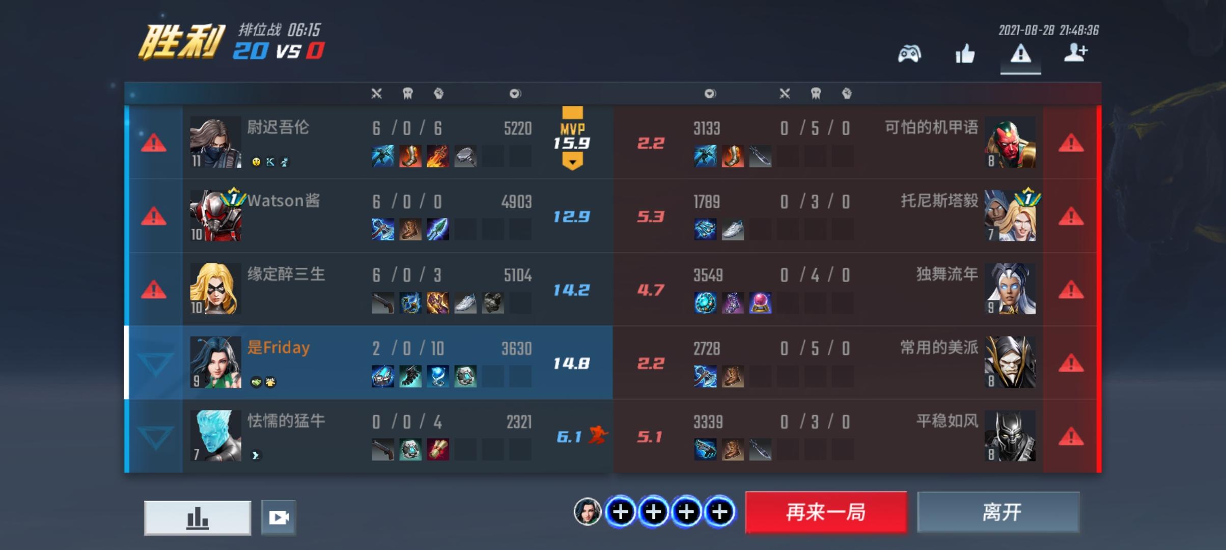 真的无语,是铂金局不行还是我惹了系统?不就是前几天连着拿了好几把MVP?!至于打五盘三盘给我塞挂机队友?!还有只顾着打字不清兵线的,差点能上段又硬生生给我拉到铂金四真挺美的暴血压。
