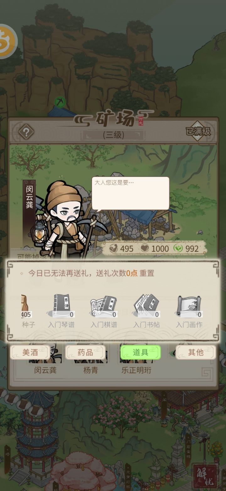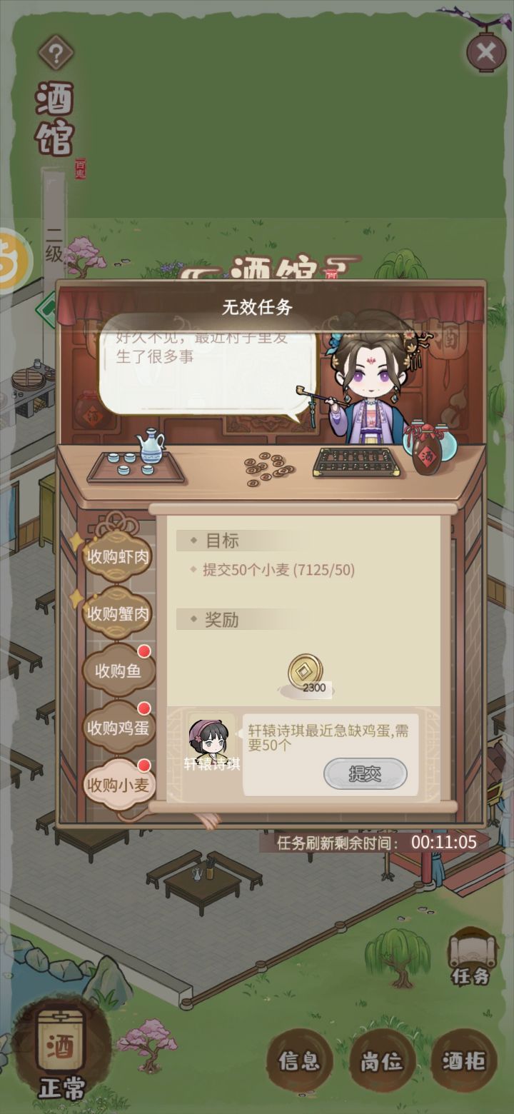 我玩了两天提几个建议1.希望增加建筑物的拆除或者回收功能。(做多了两块旱田,没人种,放在那碍眼)2.料理界面增加横屏(每次做饭都要把手机竖起来)3.增加桥梁建造功能(老是只能在那一个桥上跑)4.平衡种树和其他行业的收益(集市一刷新树副产物一卖咔咔几十万到手,其他加起来都不够种树的一半)5.增加制造调料的建筑或者在田里增加农作物 (大豆辣椒之类的)在粮铺加工成豆腐,酱油什么的,又或者直接添加一个菜摊6.提高前期石头的产量(拿银子买石头只能是为了加快游戏进程,现在是不得不买,我三个挖矿的挖一天都不够升一个建筑的)