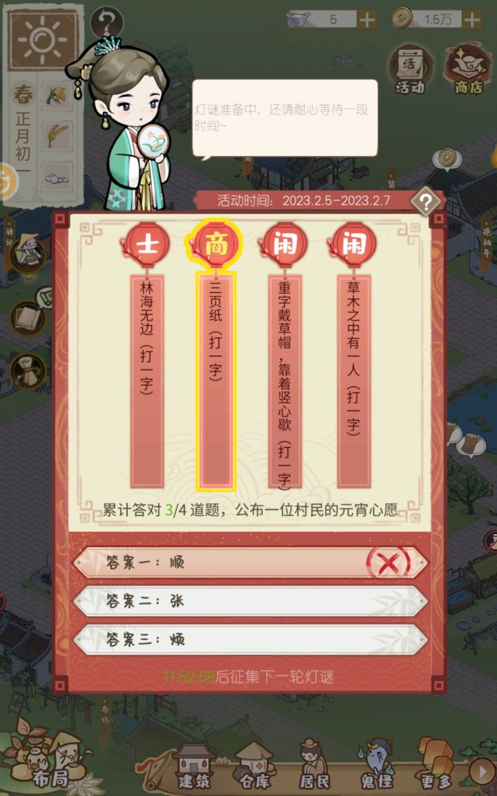 关于猜灯谜,这个也没关门啊我寻思半天也不知道选哪个,一查百度是个“团”😅