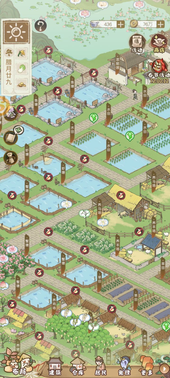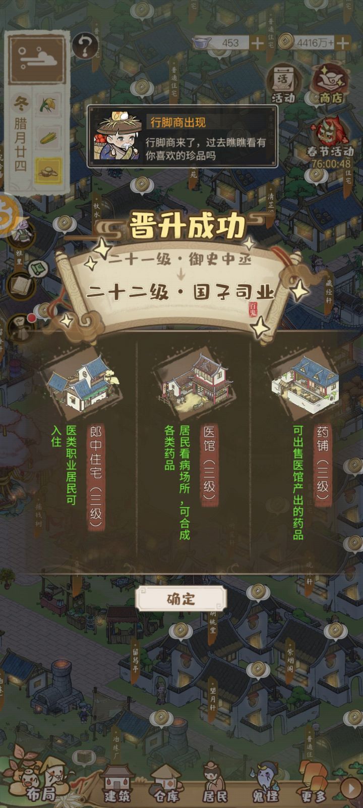 铜钱太多,木材太多? 给鬼喂猪粪嫌累? 种树站着把钱就挣了,你还想让我养猪? 建筑密密麻麻,还不敢往外搬,没酒喝心情掉的快。 等等……全都是资源产出过剩的问题,如果不能削减产出,那就想办法利用吧。 下面是我给出的建议方案。 1.铜钱过剩:四小时多两百万,还没地方花,这些都是小问题。 开放钱庄通兑,可将铜钱兑换为白银,白银兑换为黄金或银票,兑换比例10w铜钱/1两白银。(师爷背着几千万