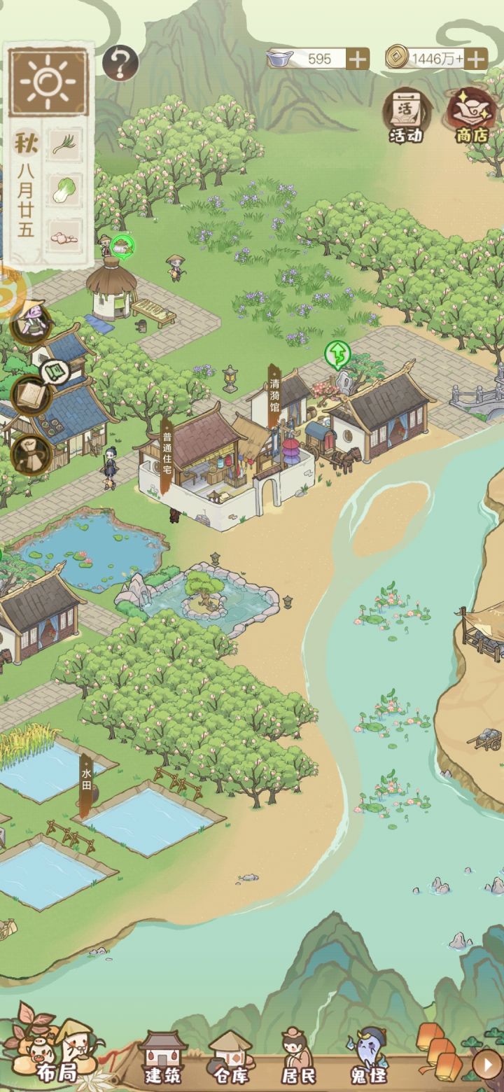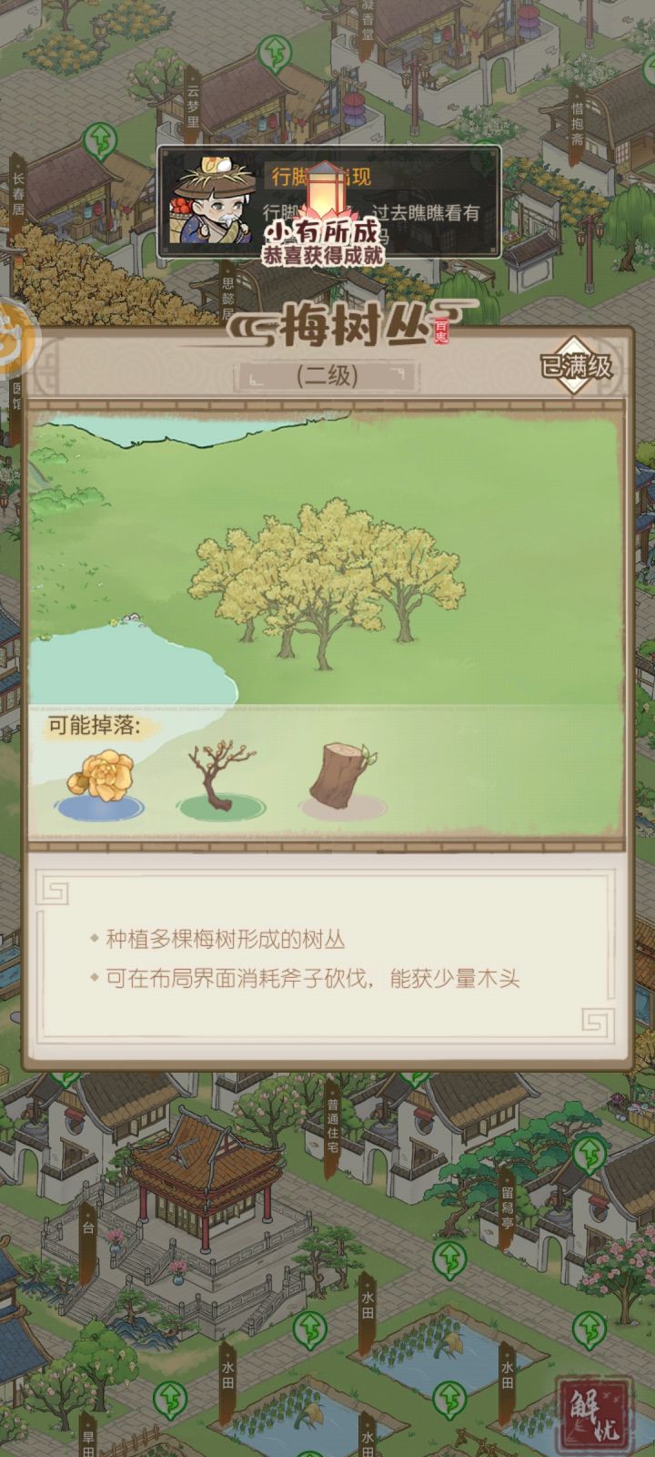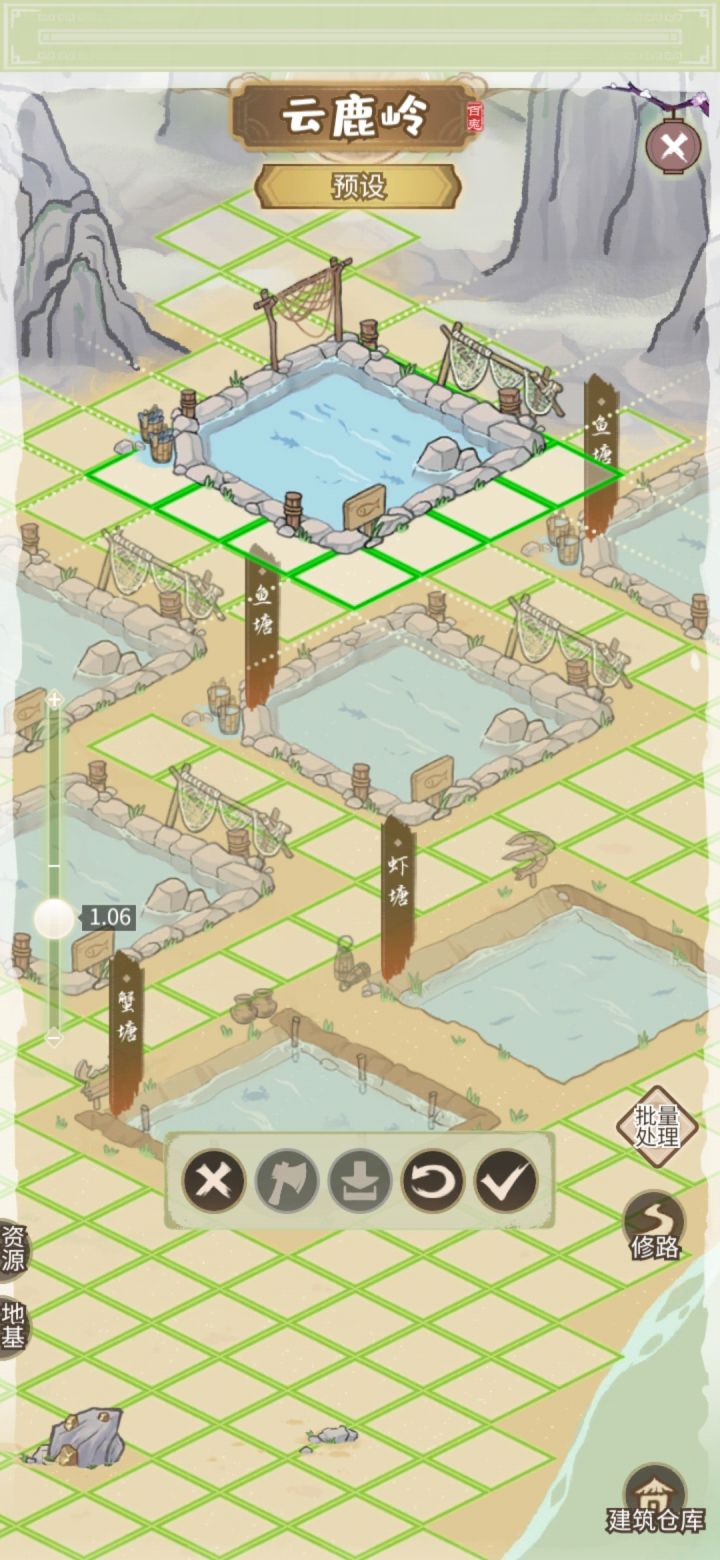 说真的,虽然升级后建筑模样是有改动的(只升了这一个鱼塘二级,其他都一级)但这个二级鱼塘跟其他鱼塘比起来还是好像浮空了啊,你这不是为难死强迫症嘛,我还没石头了不能把其他的都升个级……这个一排排中突出来一个的,好纠结啊