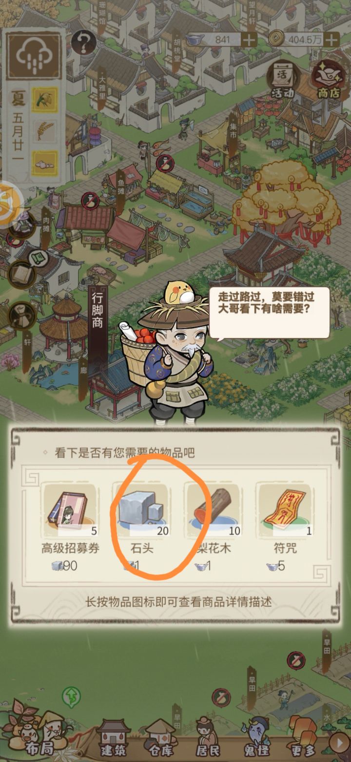 我需要行脚商的石头 但是需要用石头来买 一个石头可以在行脚商那买一个石头 你猜我为什么要买石头😅 赶紧改一下吧