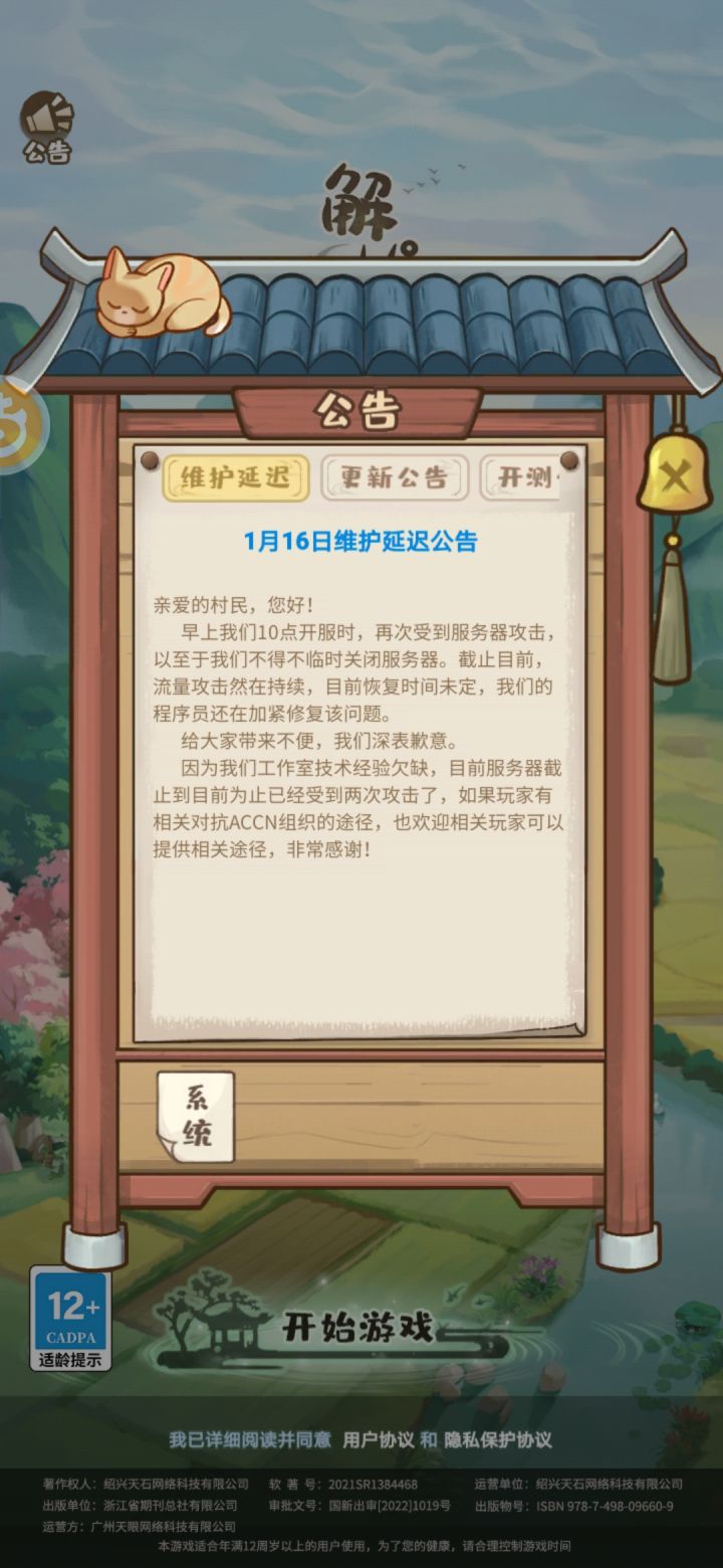 这个健康忠告放着几分钟是认真的吗?进不去不发公告,显示网络问题,怕发公告就要补偿吗?