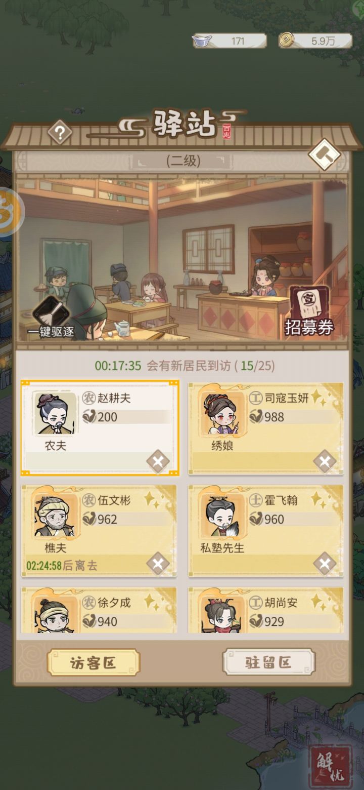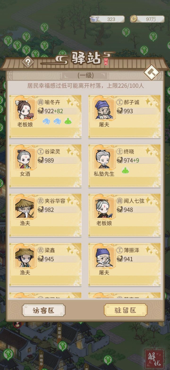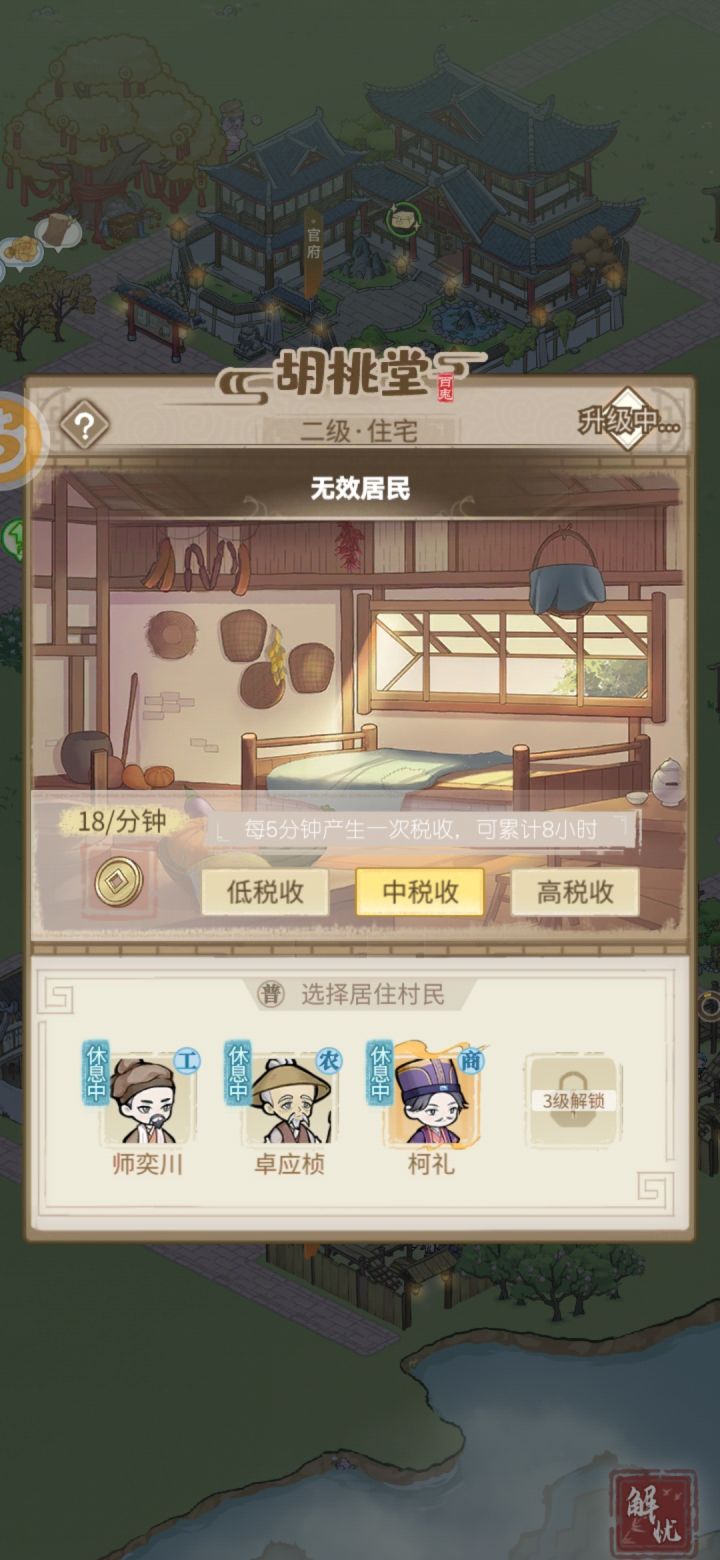酿酒坊一个不太合理,四个太多,两个最优。升上去之后人多了,可以适当调多喝酒的人。