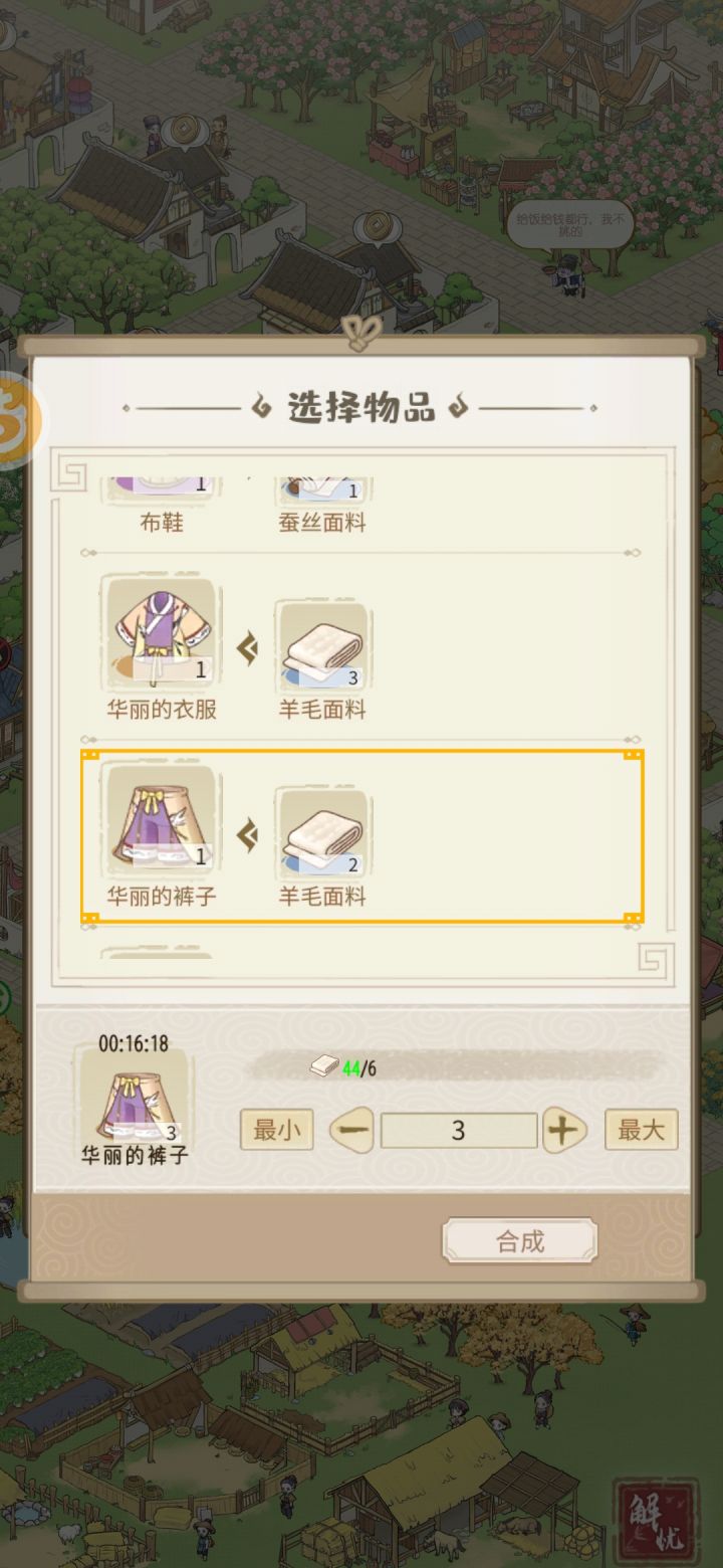 一些问题1.生产的时候能不能显示库存,我都不知道那个多那个少2.裁缝铺衣服有bug,名称不对3.P3的农夫是普通级别,但是删除的时候显示是稀有