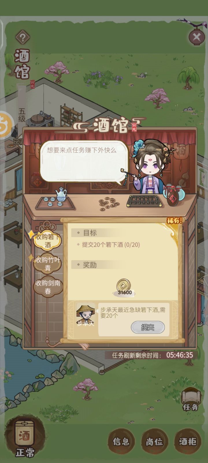酒馆升级到五级之后,任务一直不刷新是bug吗,已经好几天没刷新了
