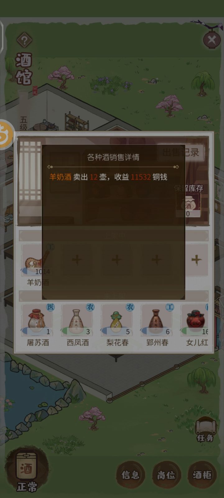 就想问问酒馆是做了改动还是设定如此?自从升到5级酒馆之后,任务栏再也没有之前的菜啊衣服什么的了,每天任务少的可怜,能提交的就更少了并且我的酒馆收益更低了,几乎没人,我一直都只放一个牛奶酒,升级之前一个月200w左右,升级之后120w,有点太离谱了吧?