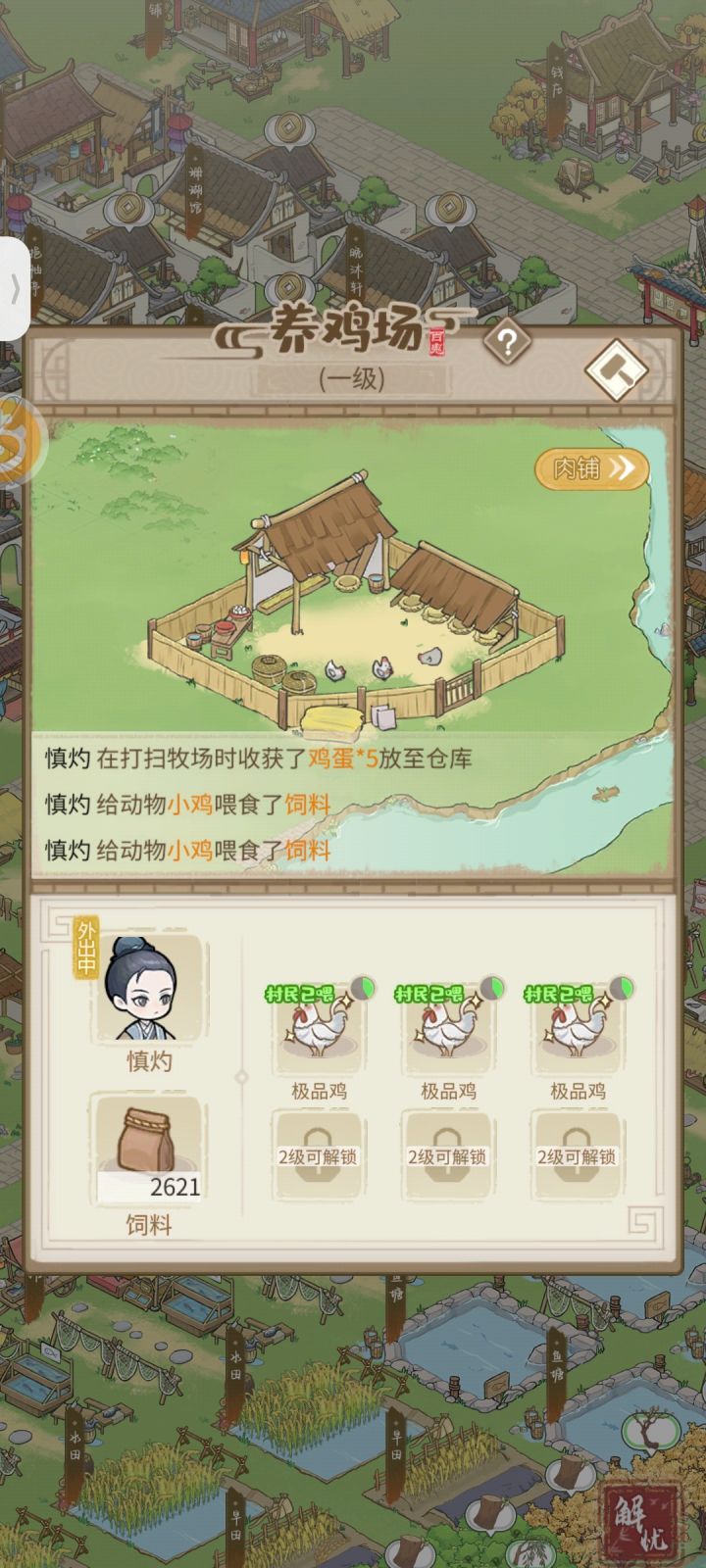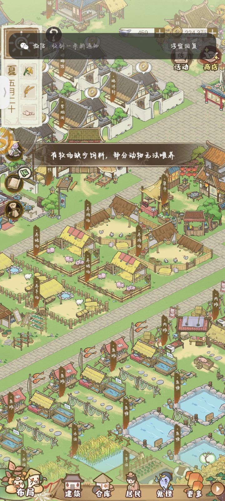1.种树吧,来钱快,材料喂鬼,剩下的全卖了2.石头现在很缺,采石场根本不够用3.我不理解为什么鸡猪羊马成了极品之后还在喂饲料,完全浪费饲料增加成本,可能极品之后会掉落粪便毛?没观察过。4.驿站真的开盲盒,老年居多,上线死一片,我现在就是全招募,放驻留5.商行刷新不根据你的当前水平,完全随机,任务也是。6.有些建筑很鸡肋,比如游玩设施,采矿,养蚕,建造和收入根本不成正比7.住房一键搬出,
