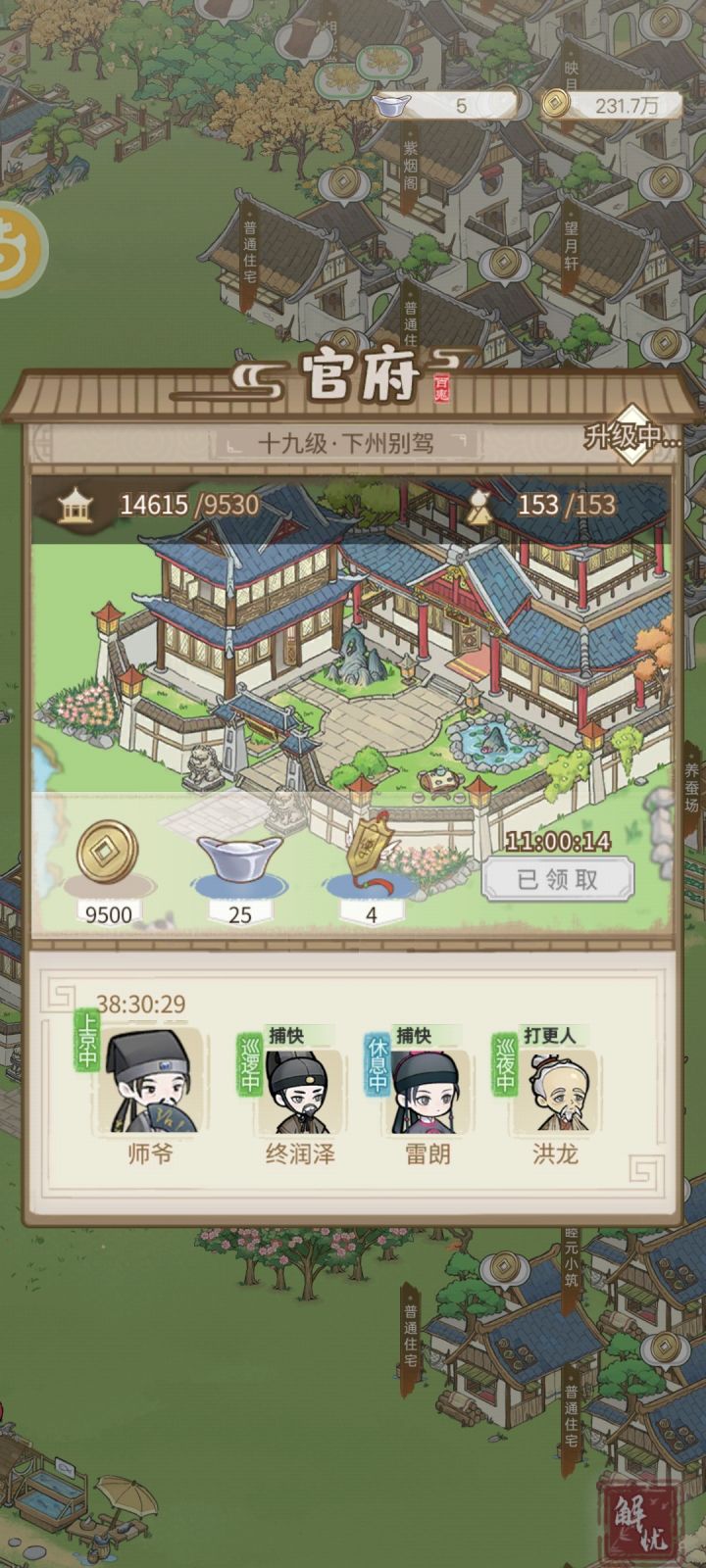 我点医馆那个“暂无病人”一直没反应,但是我的打更人和捕快生病了,他们技能还挺好的都是出去巡逻提高居民幸福值,刷了好久不想换掉他们,短期又死不了…