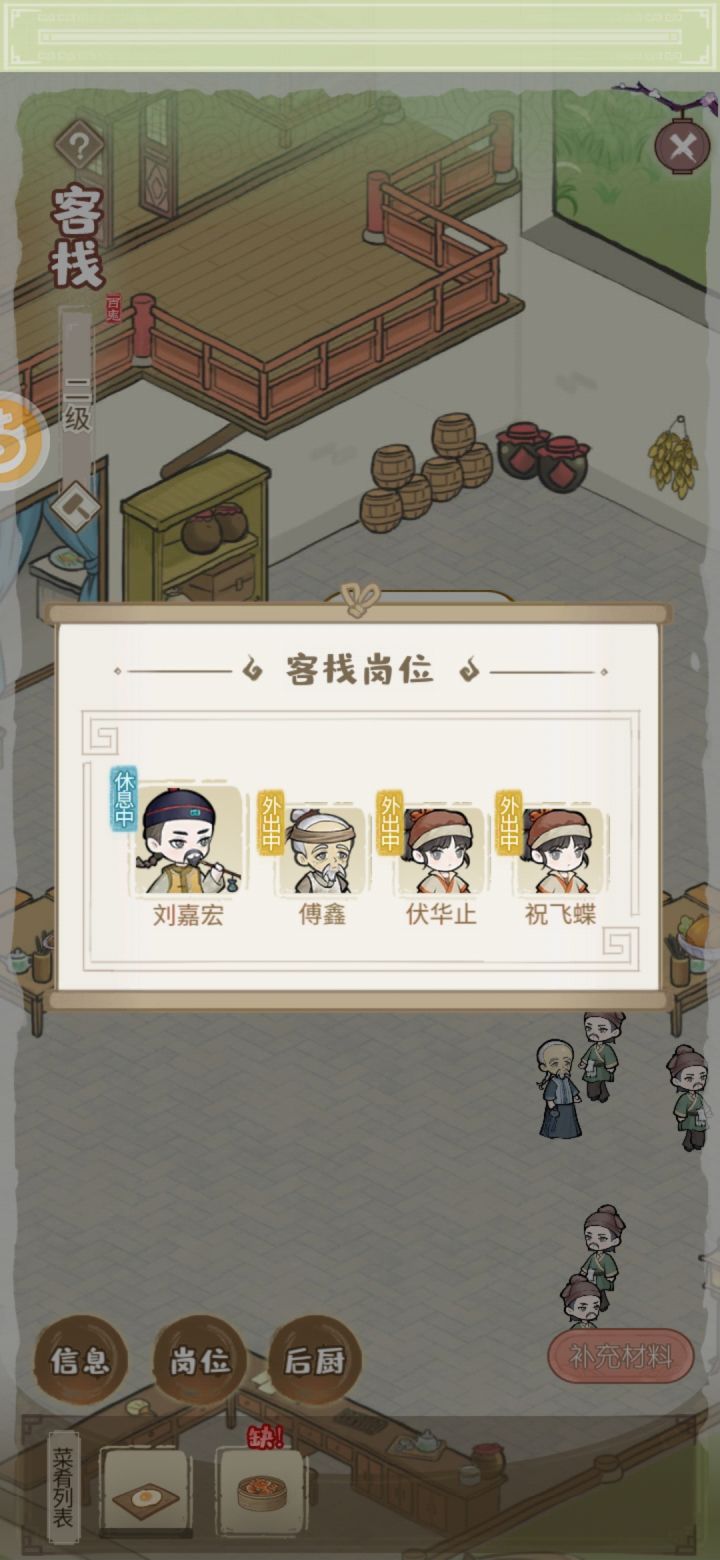 首先,我看了游戏里的客栈设定,说是按时辰一日三餐开业经营,又摸索着玩了几天,可以说有些不同建筑内有不同的玩法⒈营业时间、费用问题你这破客栈只在三餐时间开业,名为客栈实为饭馆,昂光卖饭不提供住宿的客栈啊?!起码住宿费得有吧???看客栈有招揽功能,能招揽说明不是本地人,外地人来住就该给我交住宿费呐(各位说说看是吧)不住宿就算了,改名叫食堂吧⒉开业提醒(建筑内玩法开始提醒)整个游戏说是按照古代时