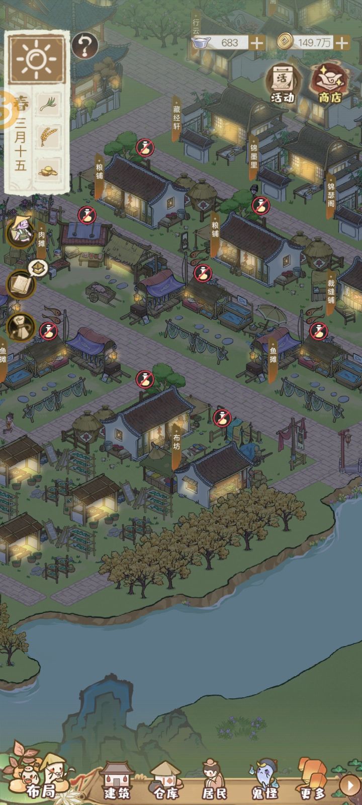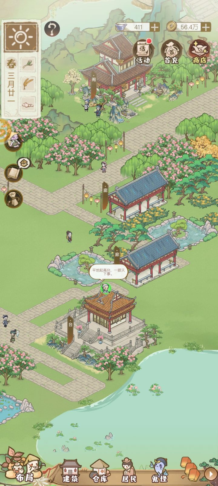 主岛布局分享,目前初步完成,最喜欢廊和棋室的组合,就差商业区还需要再归置归置