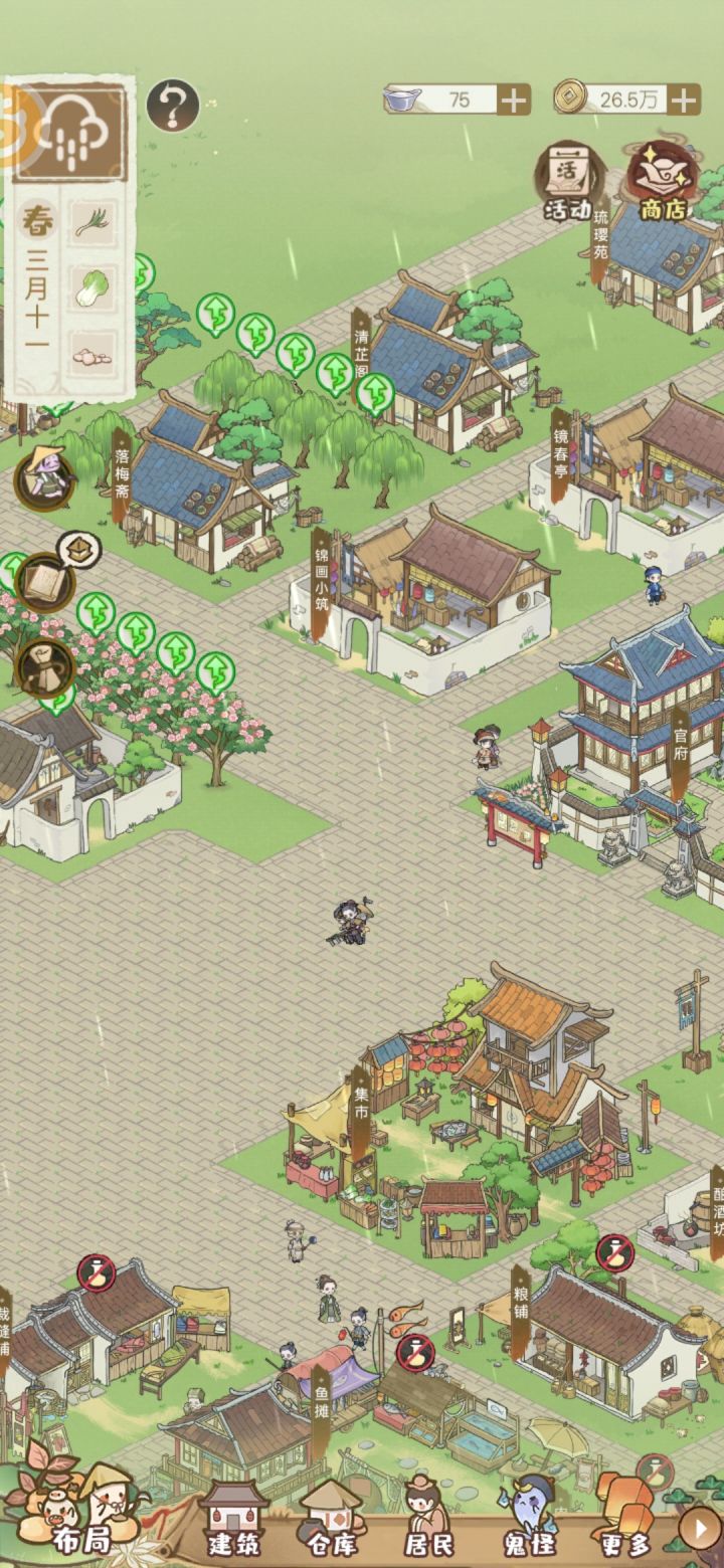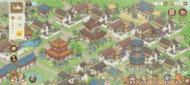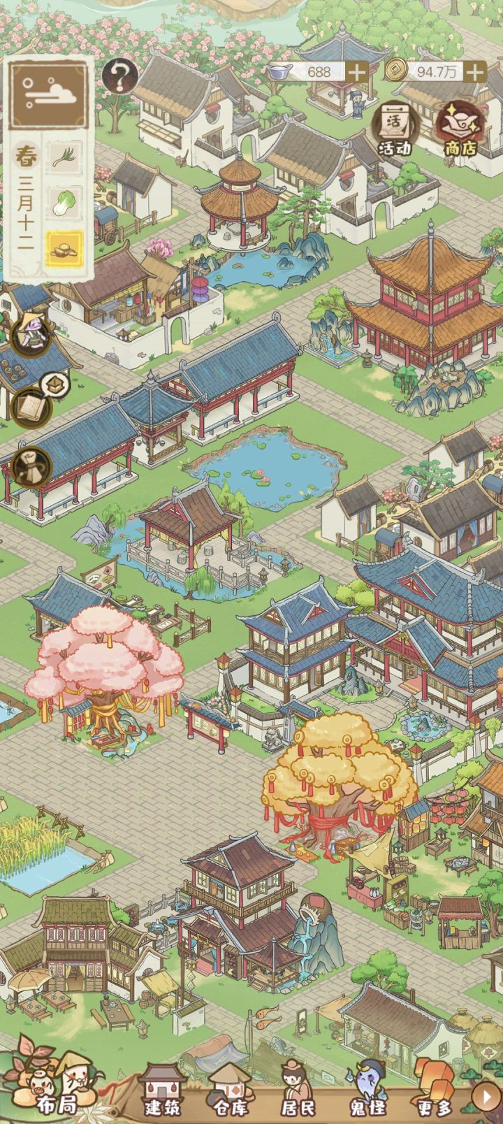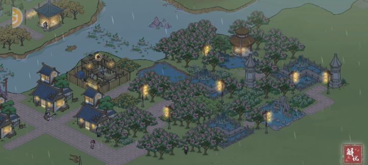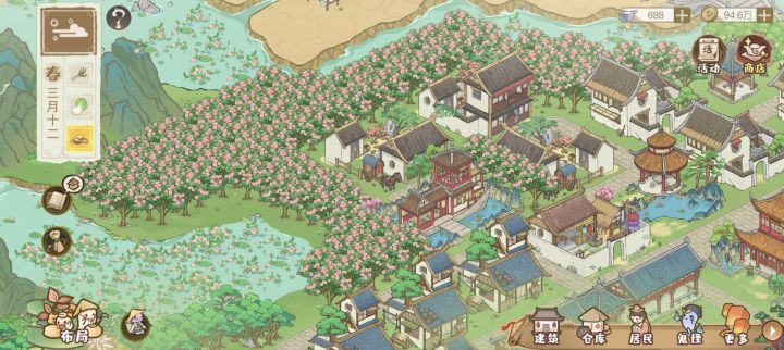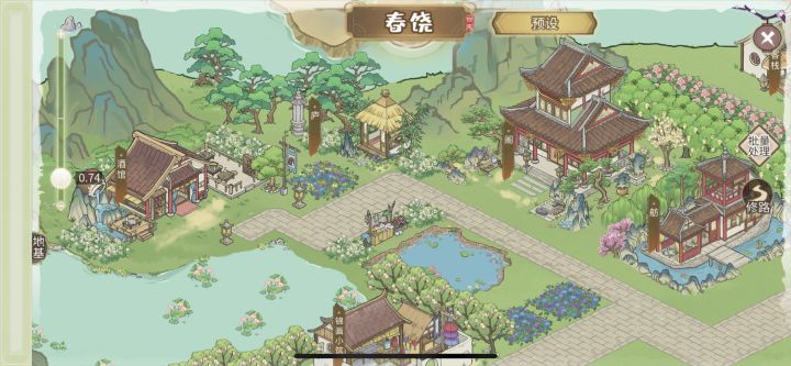 佛系玩家慢慢玩 好多东西都还没开。先布置了两个地方旅游风景区酒馆靠近矿山的梅村没弄完的主城(想等开了新的建筑放上去)隐于主城旁密林中的道观(也没弄完)