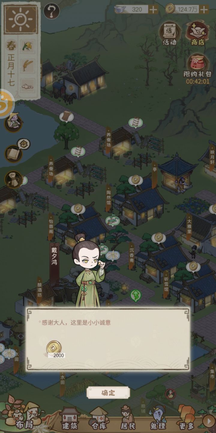 我觉得我还蛮佛系的,官服升到13,但是树还没种完,一天集市所有点卖完大概到手200W,然后基建废,好羡慕人家随便摆摆就是超好看的世外桃源的样子#游戏推荐