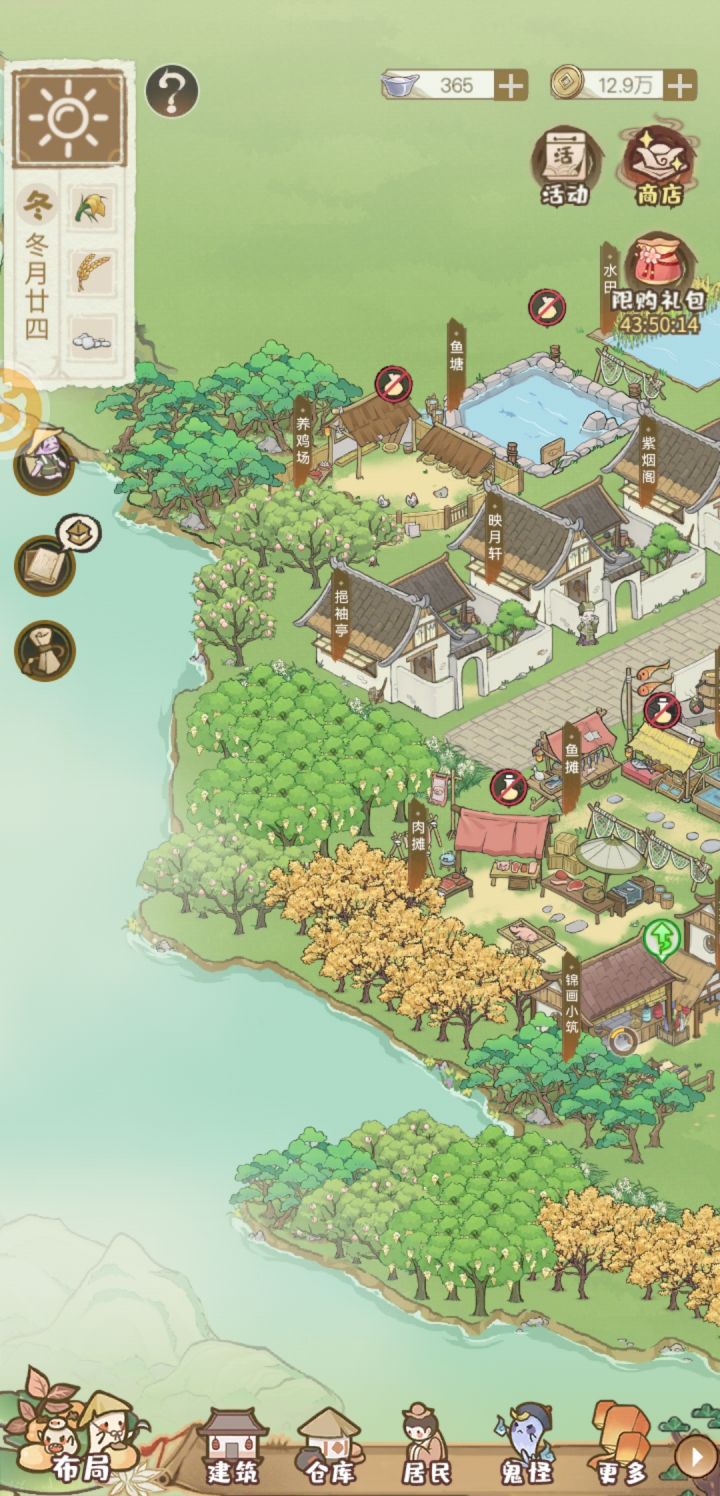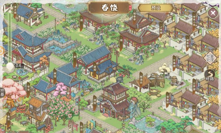 1.希望布局的时候可以调整视角或者直接把建筑隐身只剩地皮,建筑太多的地方看不见道路在哪2.希望能继续缩放看全局,现在这个0.6倍还是只能看见一小块地方不方便布局3.摆放各个建筑的时候希望不要滑动那么快,或者直接我点哪就放到哪,我只想把粉树放到黄树边上,突然滑动到天涯海角太心累了#解忧小村落布局