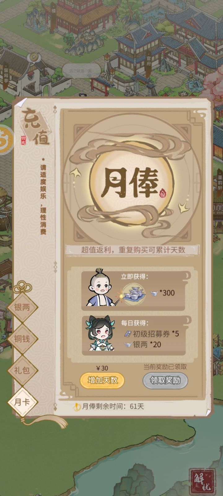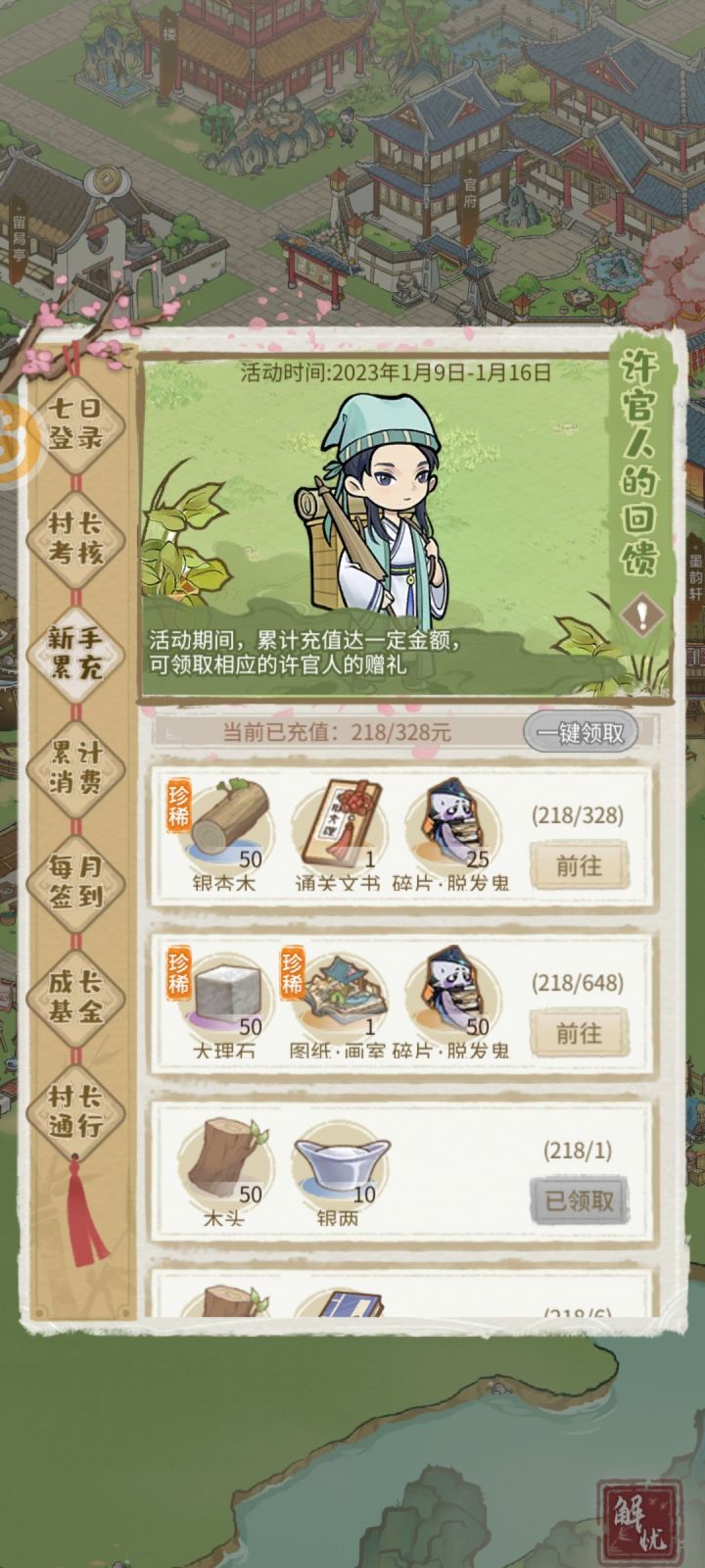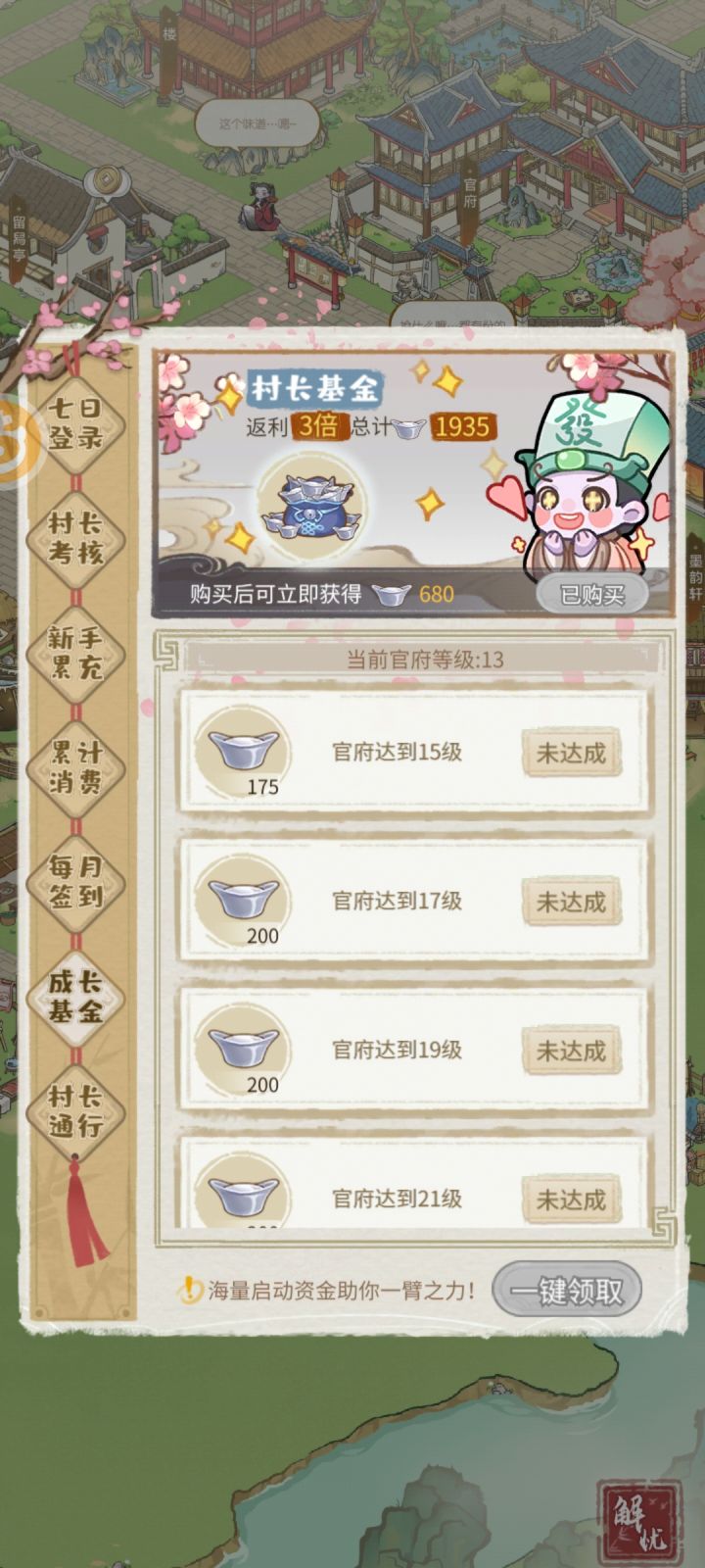 两天这个速度,还是微氪了得.还是太缺铜钱了!!补充-氪了200¥(月卡,成长金,通行证,材料,楼)