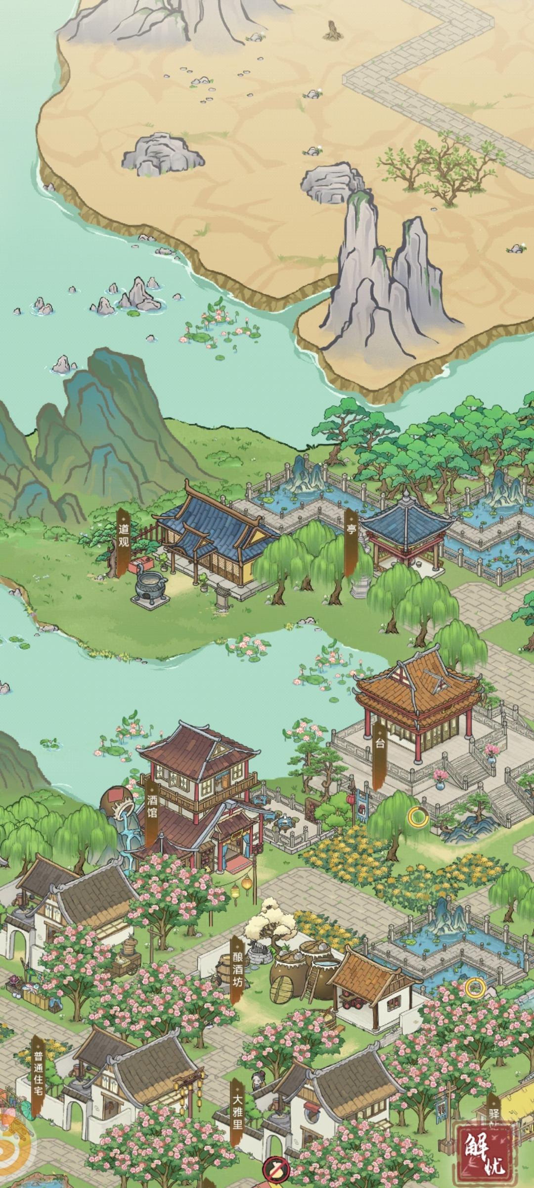 第一次城建,新人小白表示真累啊每天花大量的时间考虑景观布局,肝都要炸了!但是出效果后,真的成就满满!首先是我的城主府!!!中间是府,两边是庭,更有金灿灿的菊花围绕四周,加以梅树丛拱卫在侧!威武不?!霸气不?!府前广场之上,一汪碧蓝的泉水像是一颗蓝宝石嵌入正中,让这庄重威严的府衙凸显了几分灵动。广场的尽头,两根盘龙柱伫立两端,尽显天威浩荡!漂亮极啦,我真棒!注:这里的布局是参考