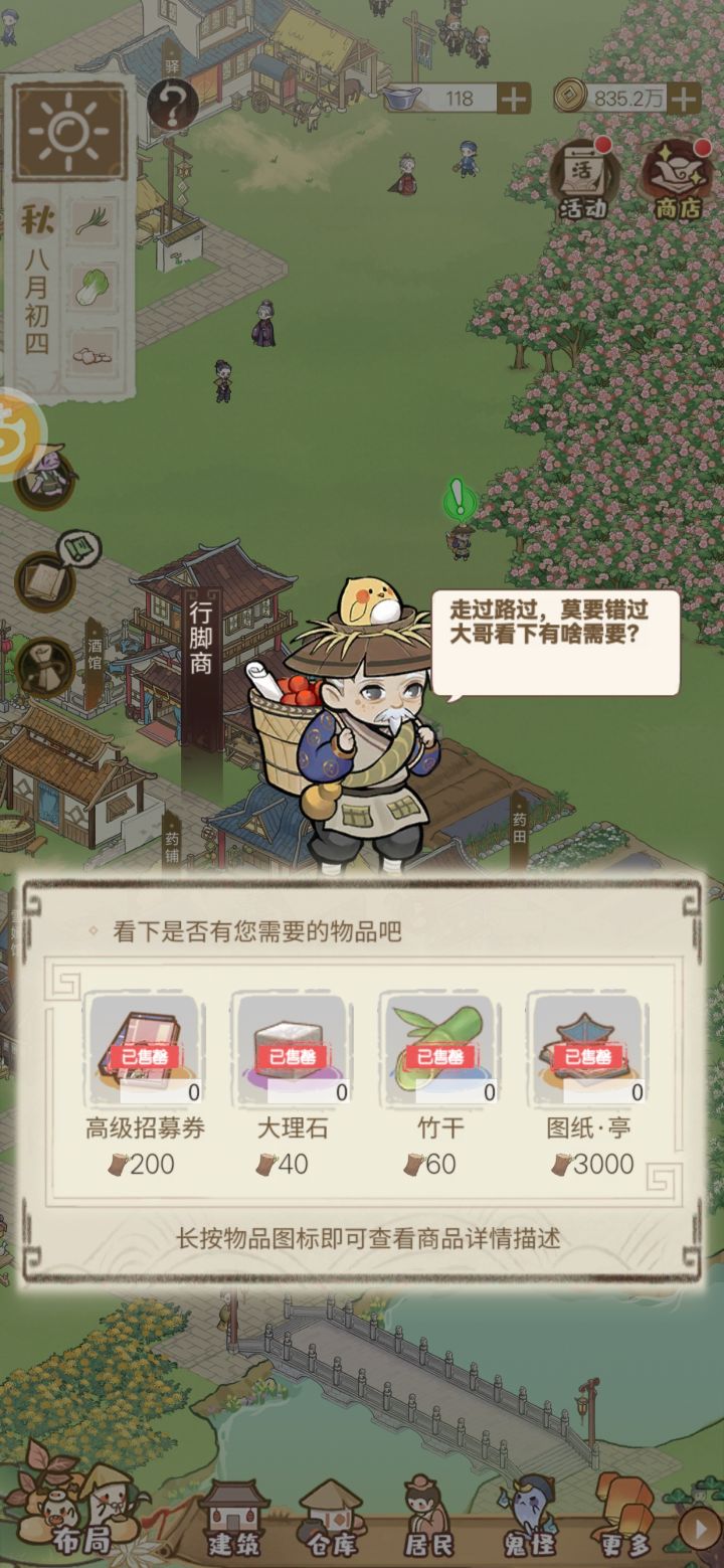 来个出售木头的,太占格子了,行脚商消耗的太少了