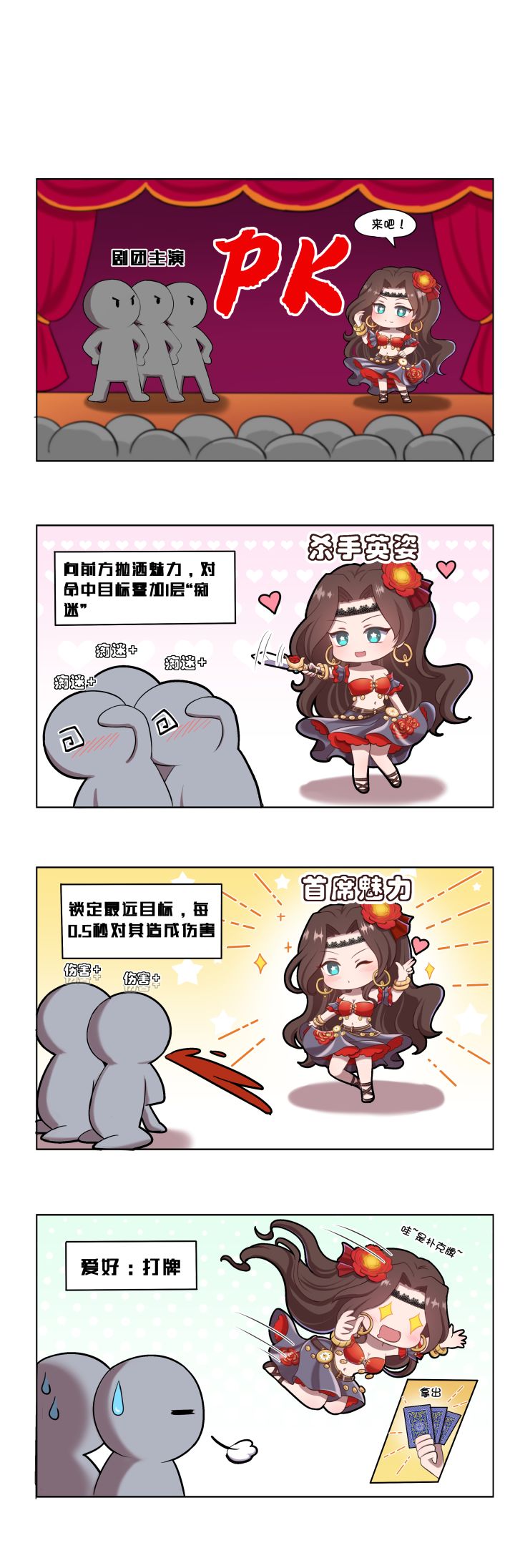 在伊桑和翠西亚帮助下,嘉尔娜大放异彩,偶尔也会跟剧团主演们进行一些友好的互(切)动(磋)。但比起歌舞剧,好像有别的活动更吸引她……