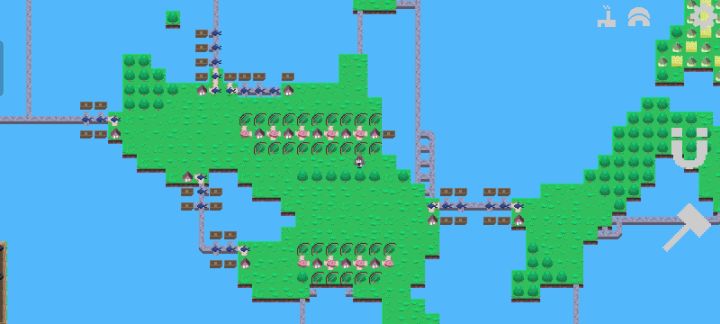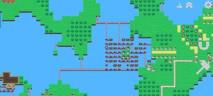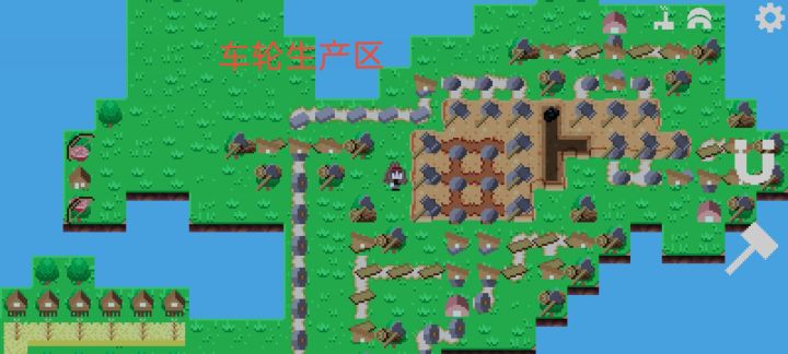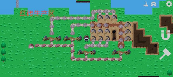 三个铁冶炼厂共需要3个铁矿区3个煤矿区。考虑到铁矿区产量为1,煤矿区产量为5;快递运送数量为1,道路运送数量为10(石路为20)。所以铁冶炼厂原材料运送方式分别为:铁矿-快递传送,煤矿(燃料)道路运送。布局为图一上半部分。