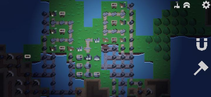 复杂体系最难的其实是底层运输道路的构建。两个厂区20个煤矿区12个铁矿区的传输比较复杂。所以分解成两个工业区后,难度减半,只有10个煤矿区6个铁矿区。再分解成对称的上下半区后,难度更低。再加上用快递传送铁矿,其实要规划的只有5个煤矿区的运输线路。