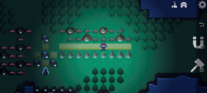 这个帖子就是稍微详细一些版本的攻略了,第一次出这个游戏的攻略有不对的地方希望大家能指正谢谢大家!第一科技是我们需要献祭浆果才能解锁科技,研究出我们的浆果丛之后建造个一排浆果丛开始收集,收集方法也就是在上面走来走去就好,每个浆果丛的生产储存上限是100,后续就是继续出锤子,锤子的用法也就是删除建筑和复制建筑,非常好用的功能。然后是磁铁,磁铁的作用也就是停止建筑运行和开始建筑运行的开关,和连通运输道