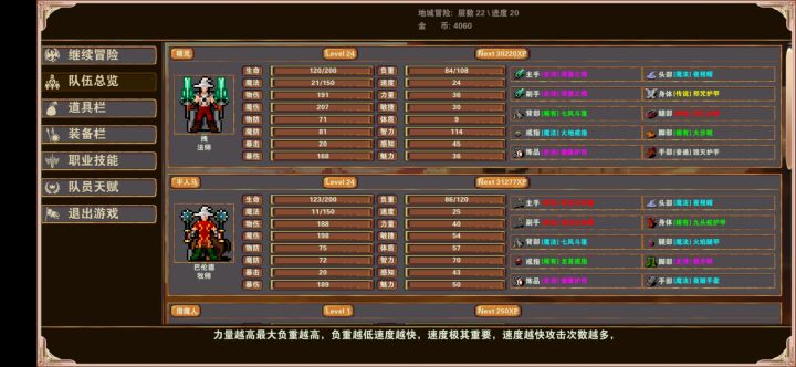 2、进游戏要看下升级潜力值 具体选角色时候有写波动范围,就我个人而言输出职业潜力只要伤害大于10就可以开局了。(选好圣物进游戏后,打开属性记一下自己的伤害和敏捷面板(其他几乎没用),然后选完队友去酒馆吃经验就能升级了,再打开属性面板对比,潜力波动在选择职业时有说明。)