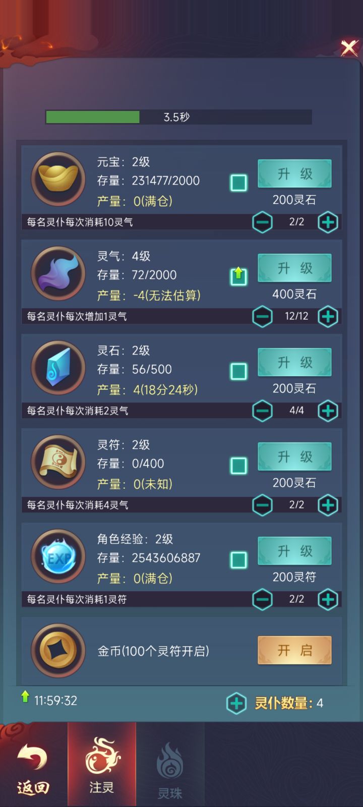 各位大神,我这灵符产量要怎么弄啊,一点都不会增加???