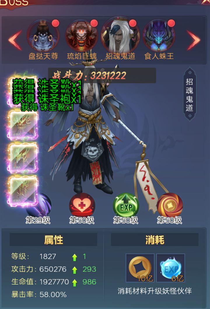 新萌可看篇:1、100级之前篇。(领取完礼包码后,将妖魔卷轴出售,大约可获得几十亿金币启动资金。ps:因为100级之后才可以使用妖魔卷轴进行驱魔,加上每日商城可以继续购买妖魔卷轴,所以推荐新萌首先将礼包码获取的卷轴出售换成金币)100级开始可以驱魔,但是新萌前1-2天应该到不了100级。所以主流还是挂机以及商城购买资源。100级之前主角与伙伴升级安排(个人选择)优先伙伴,根据经验来安排。例